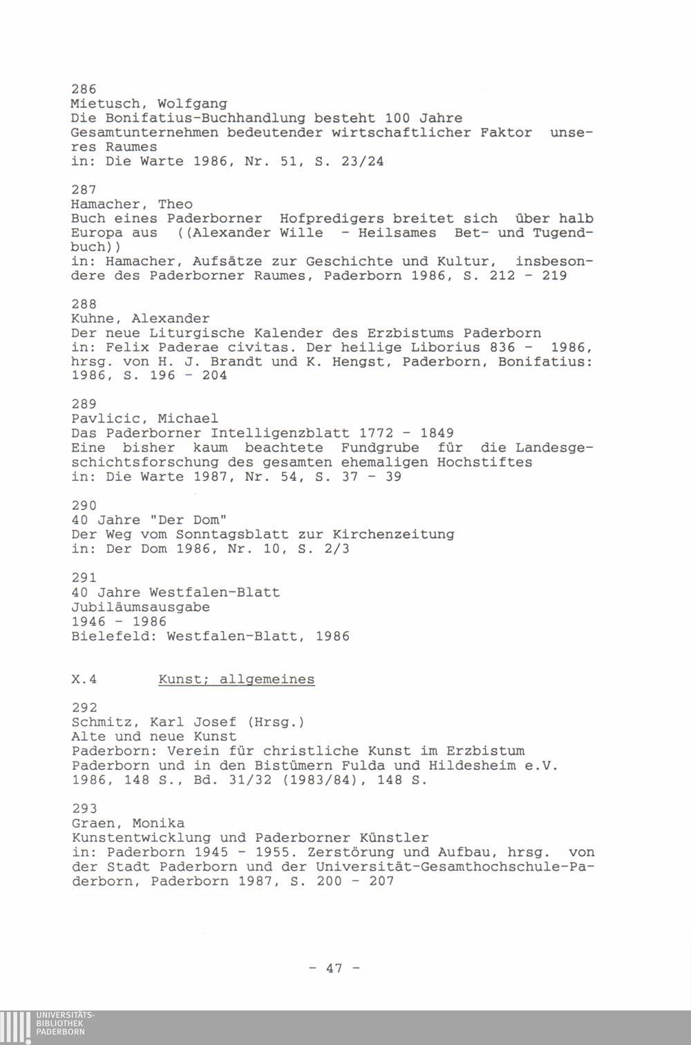 Paderborner Bibliographie ...