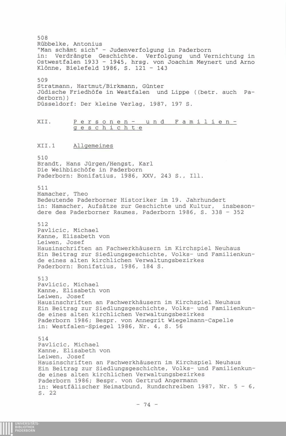 Paderborner Bibliographie ...