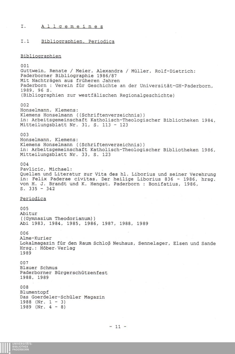 Paderborner Bibliographie ...
