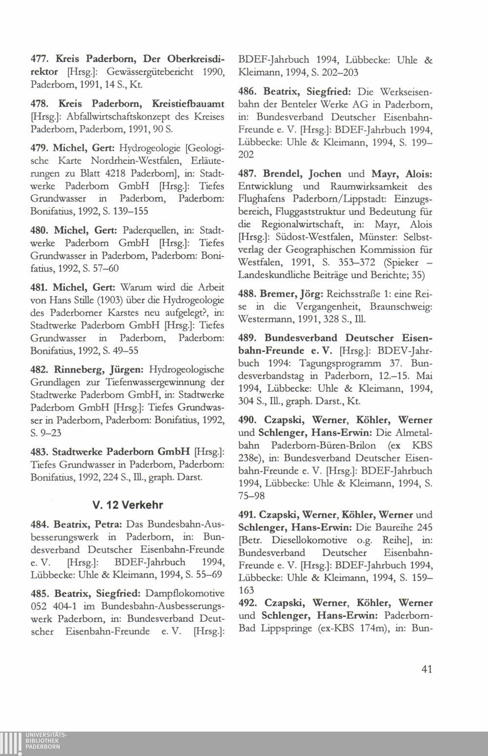 Paderborner Bibliographie ...