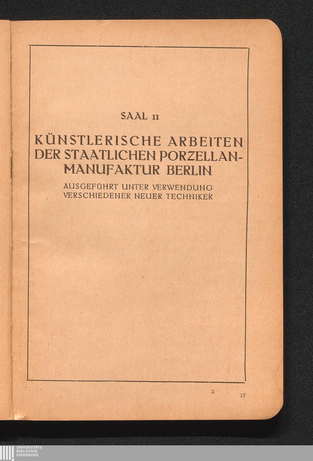 Saal II Künstlerische Arbeiten Der Staatlichen Porzellan-Manufaktur Berlin Ausgeführt[...]