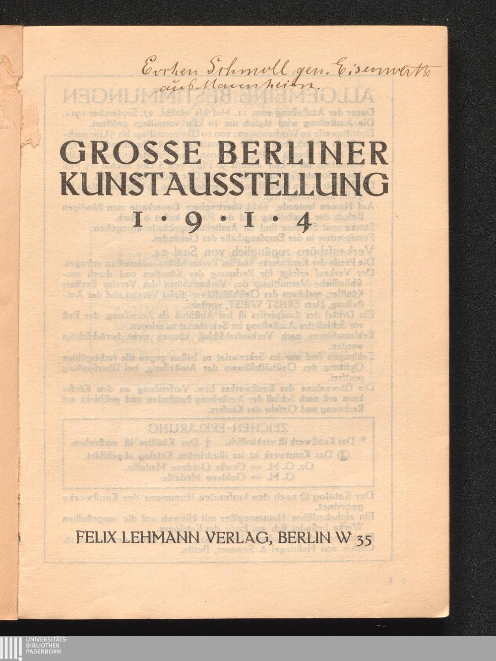 Verzeichnis Der Ausgestellten Kunstwerke