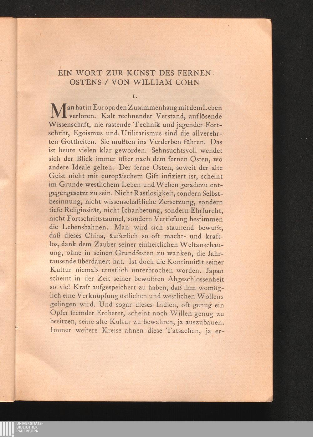 William Cohn: Ein Wort zur Kunst des fernen Ostens