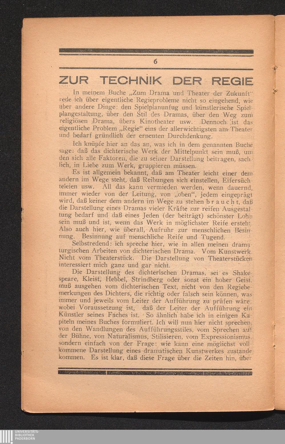 Zur Technik Der Regie