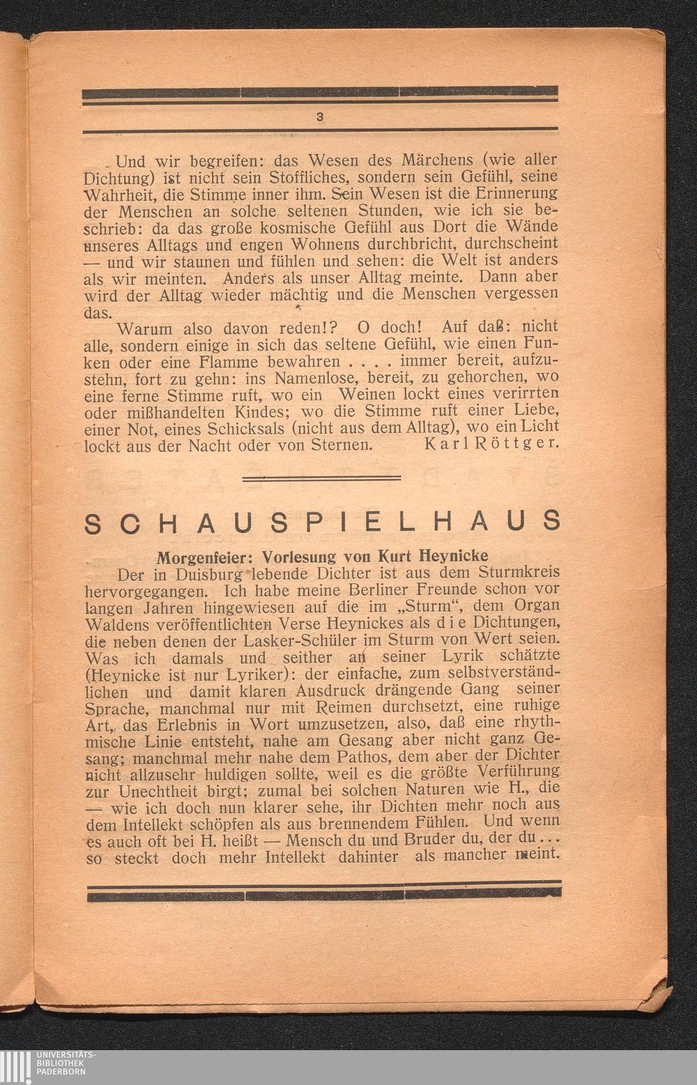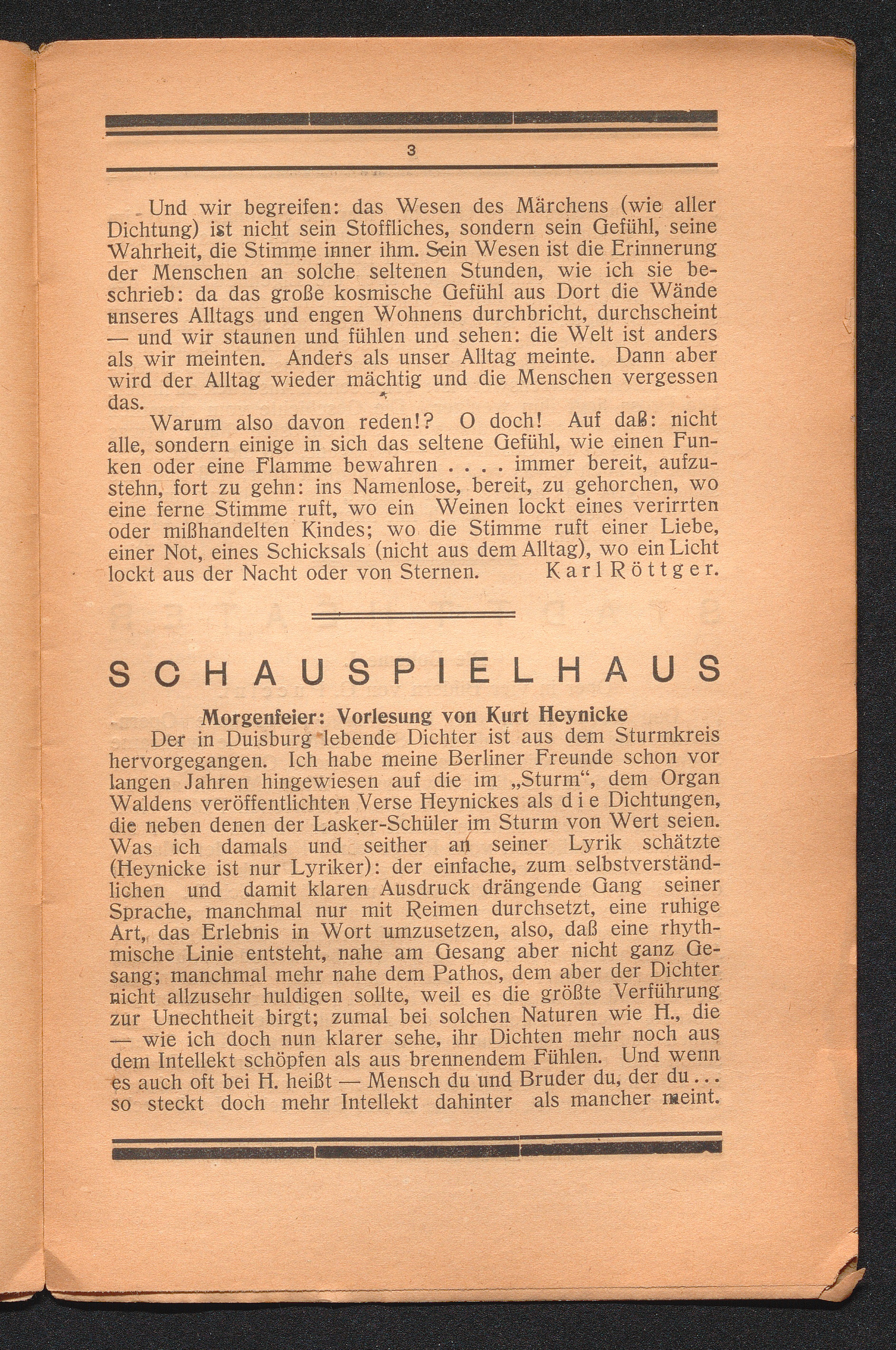 Morgenfeier: Vorlesung von Kurt Heynicke