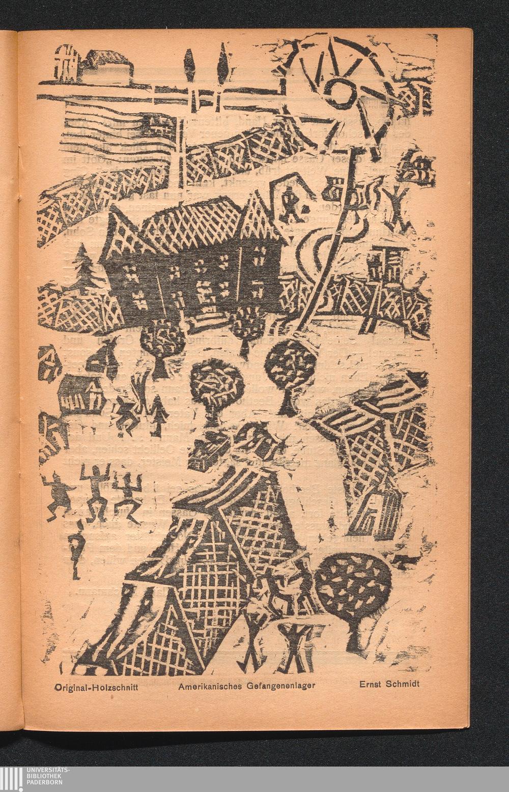 Original-Holzschnitt Amerikanisches Gefangenenlager Ernst Schmidt