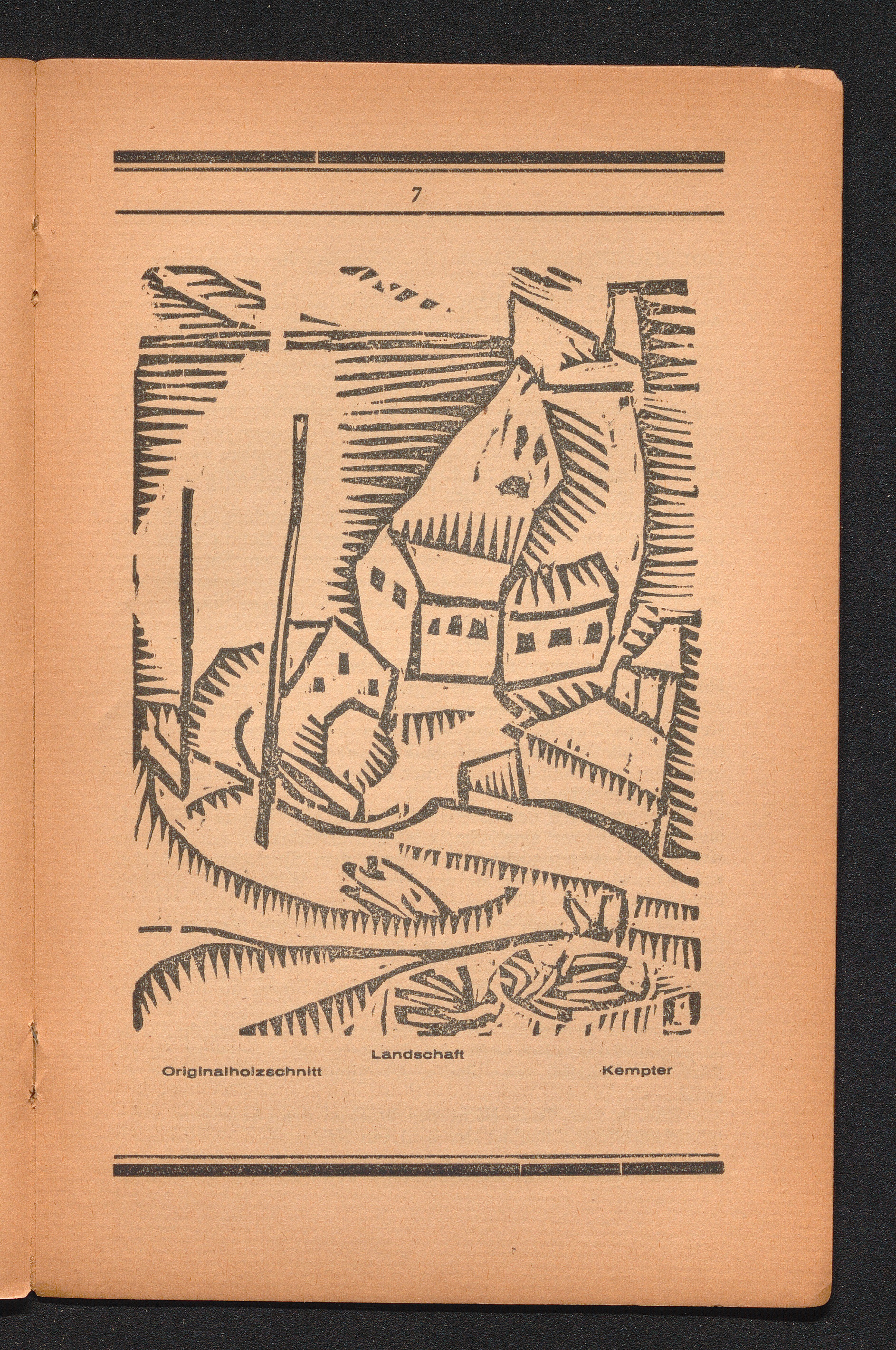 Landschaft Originalholzschnitt Kempter