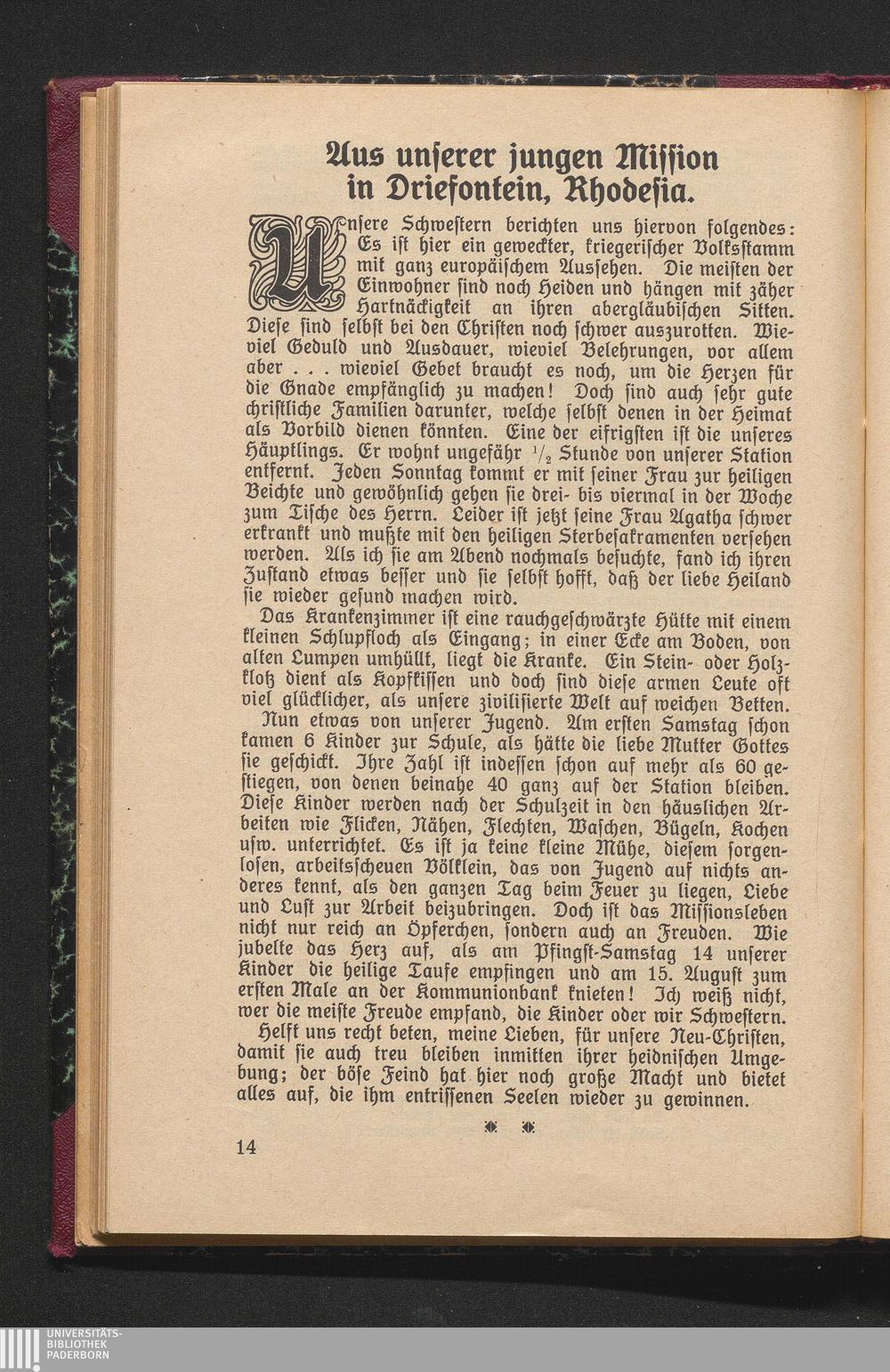 Aus unserer jungen Mission in Driefontein, Rhodesia.
