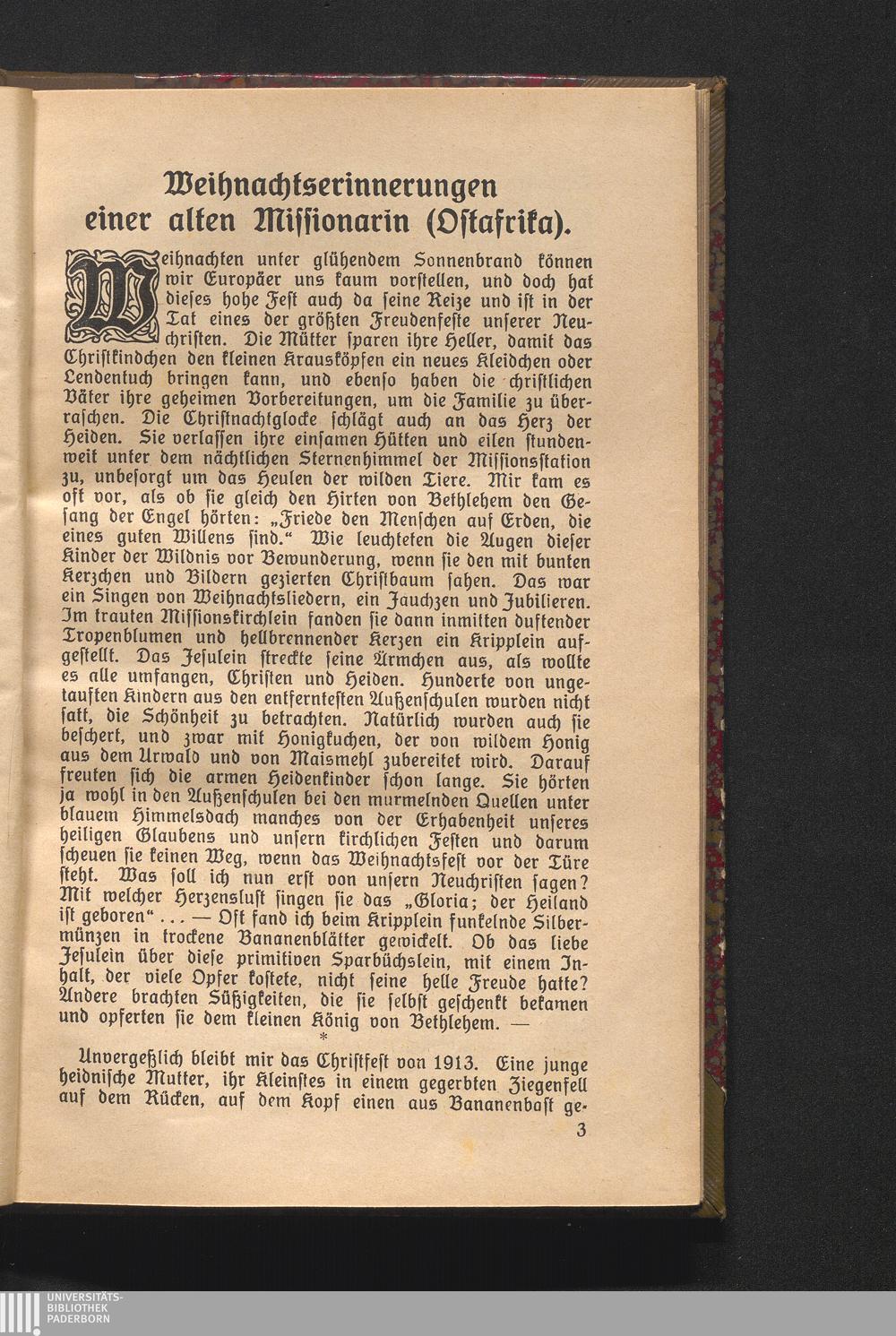 Weihnachtserinnerungen einer alten Missionarin (Ostafrika).