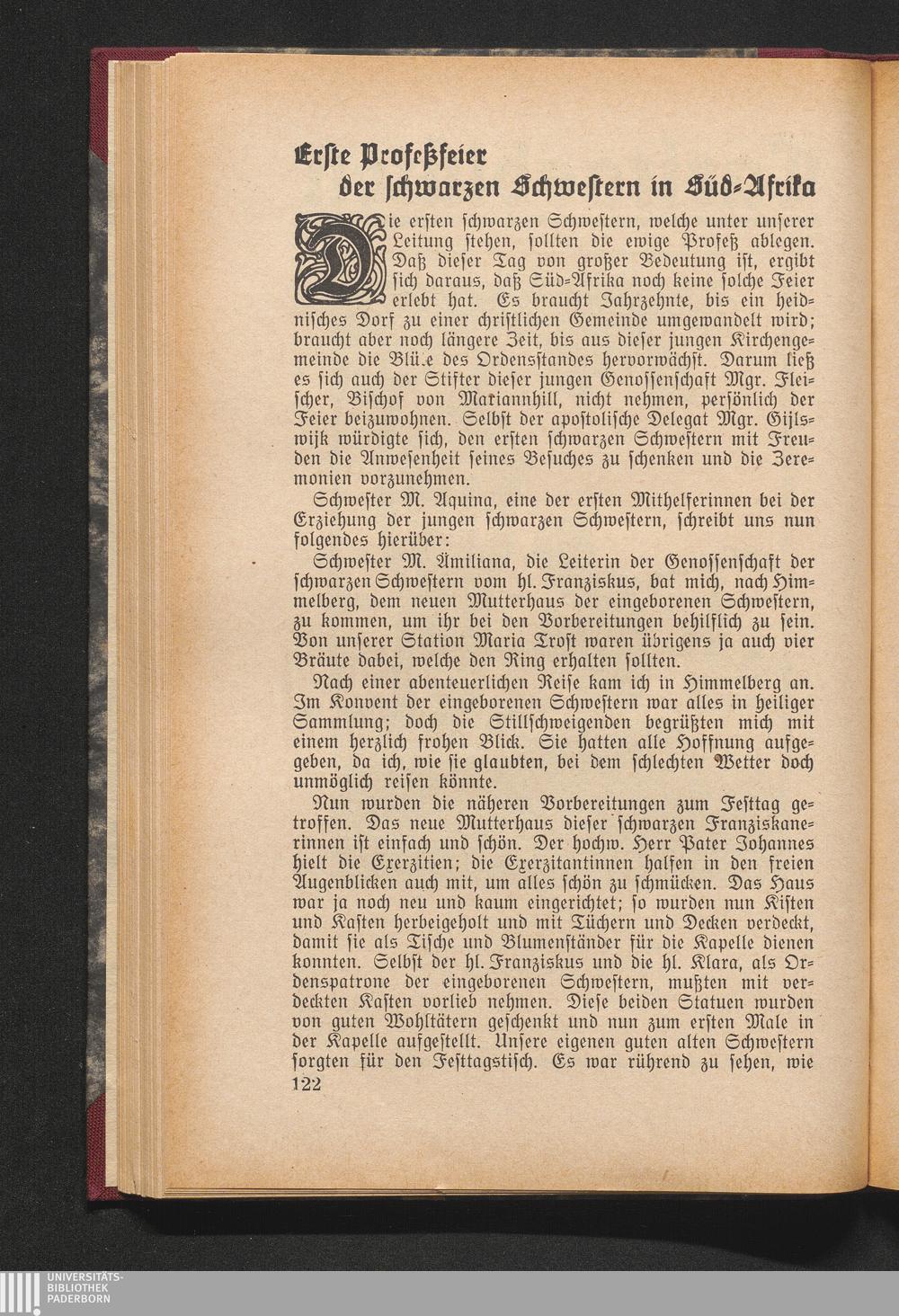 Erste Profeßfeier der schwarzen Schwestern in Süd-Afrika