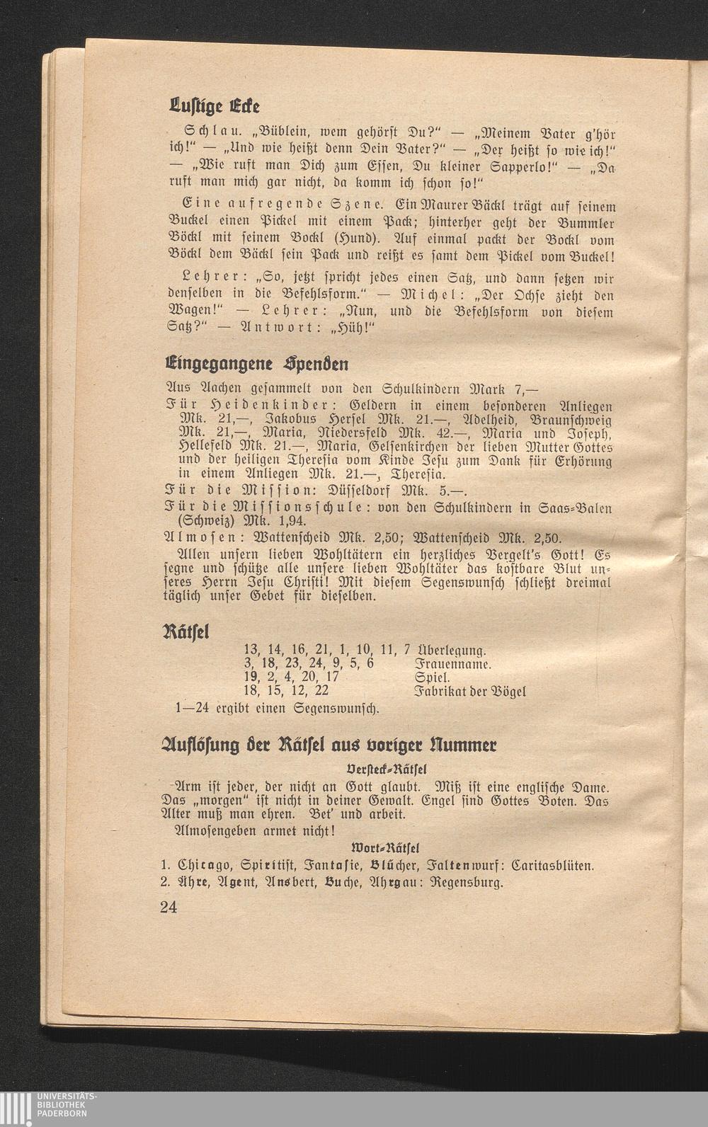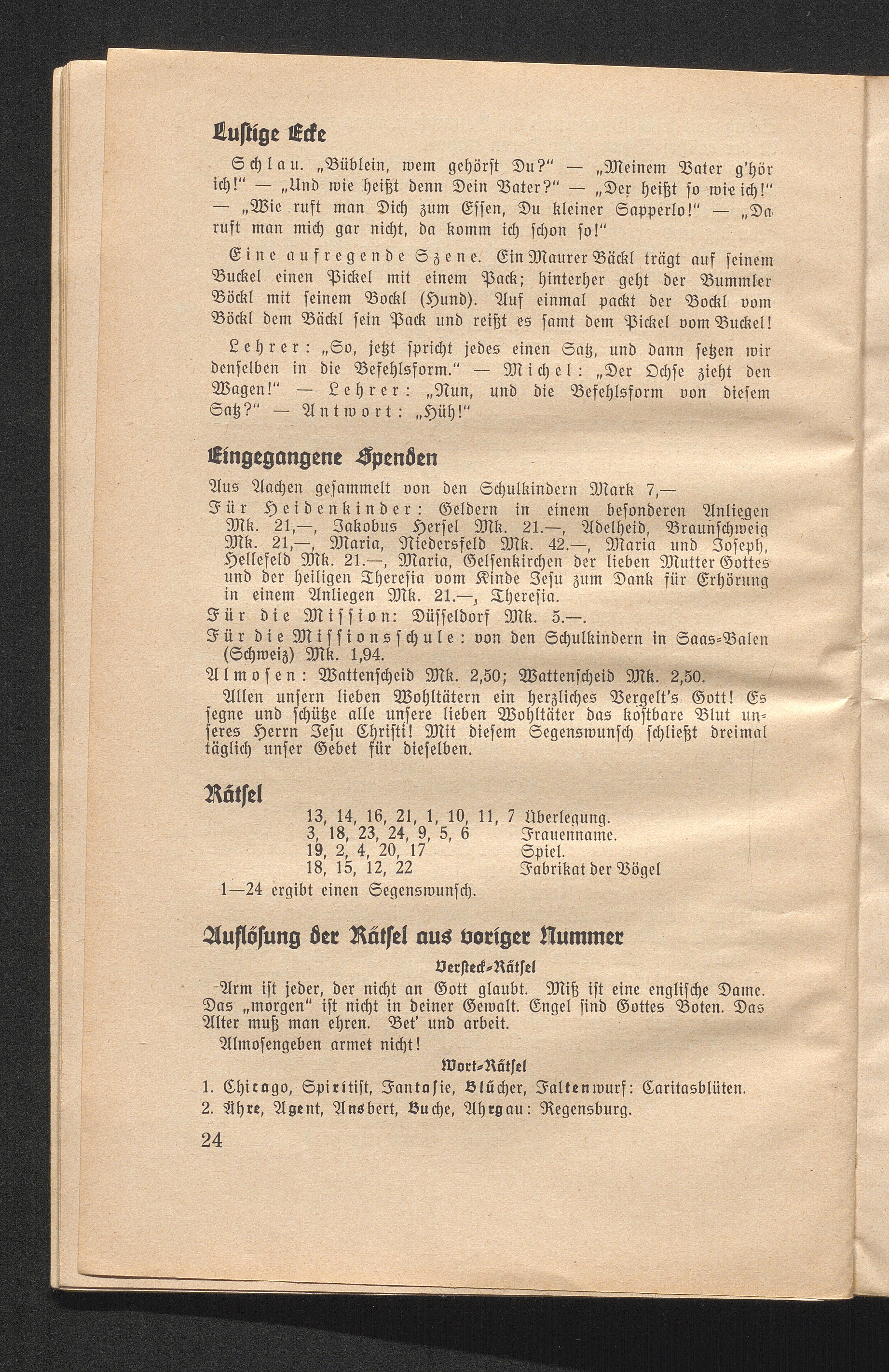 Auflösung der Rätsel aus voriger Nummer