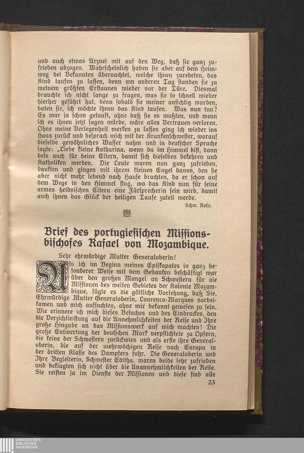 Brief des portugiesischen Missionsbischofes Rafael von Mozambique.