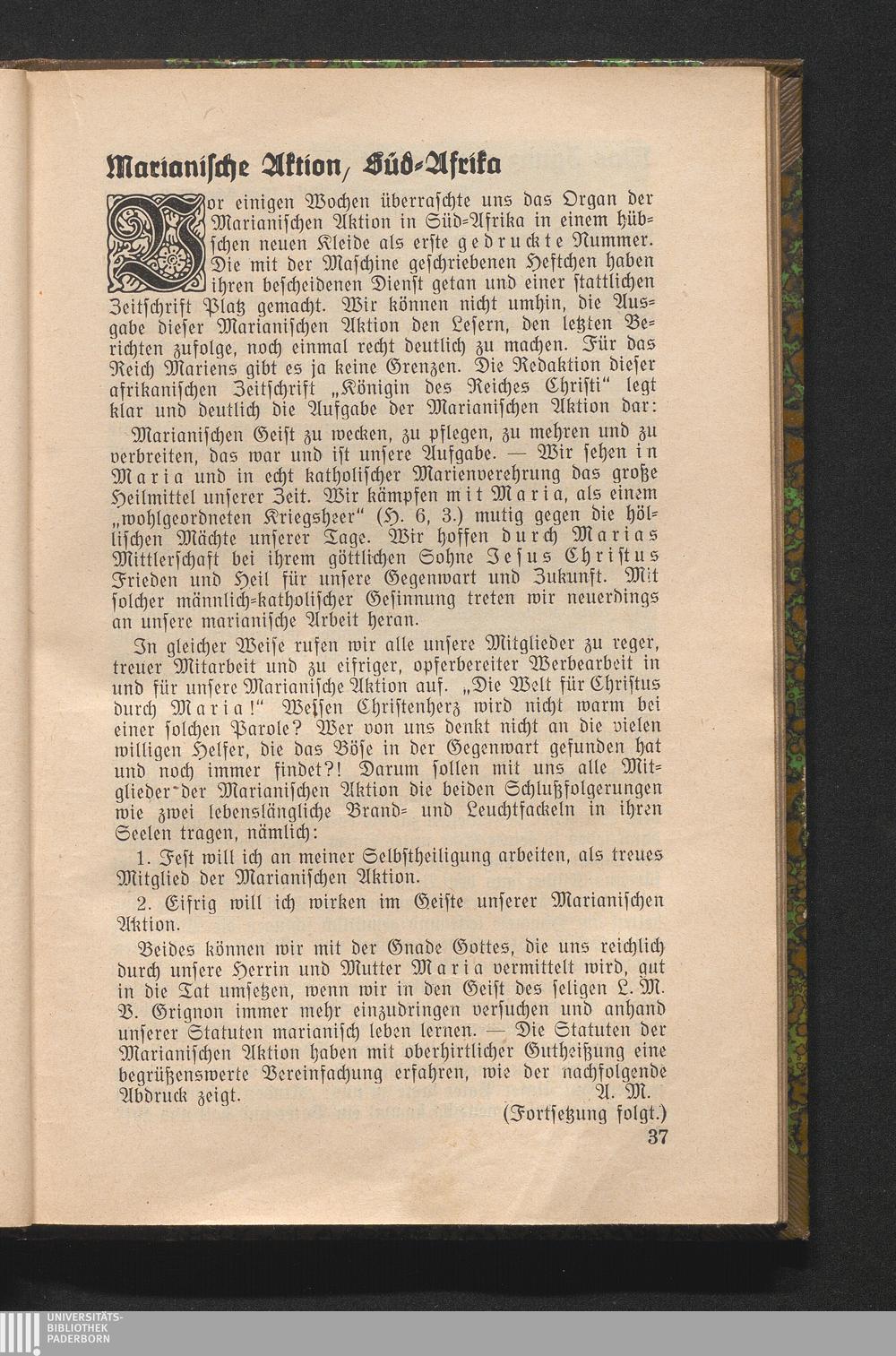 Marianische Aktion, Süd-Afrika