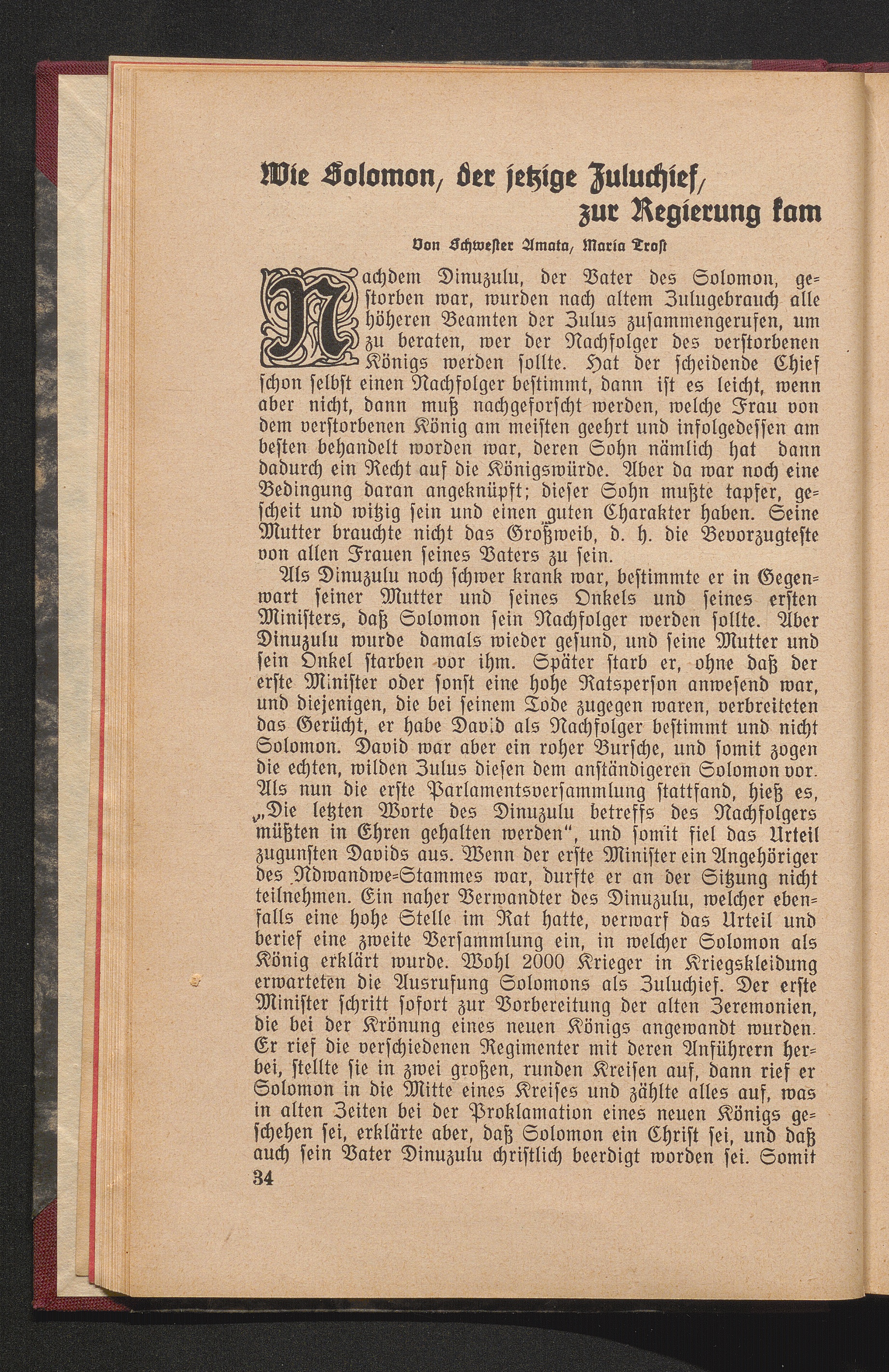 Wie Solomon, der jetzige Zuluchief, zur Regierung kam