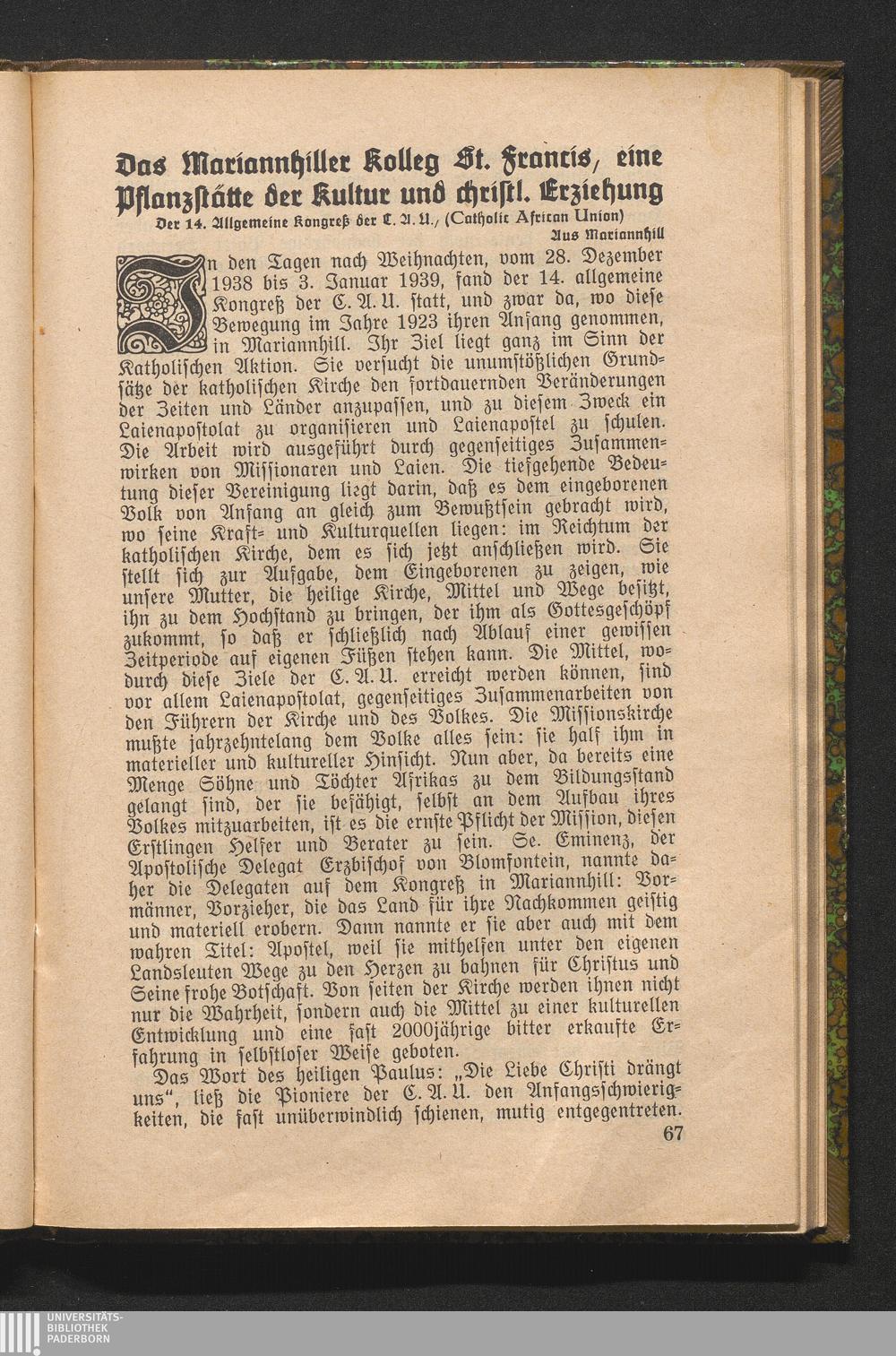 Das Mariannhiller Kolleg St. Francis, eine Pflanzstätte der Kultur und christl. [...]