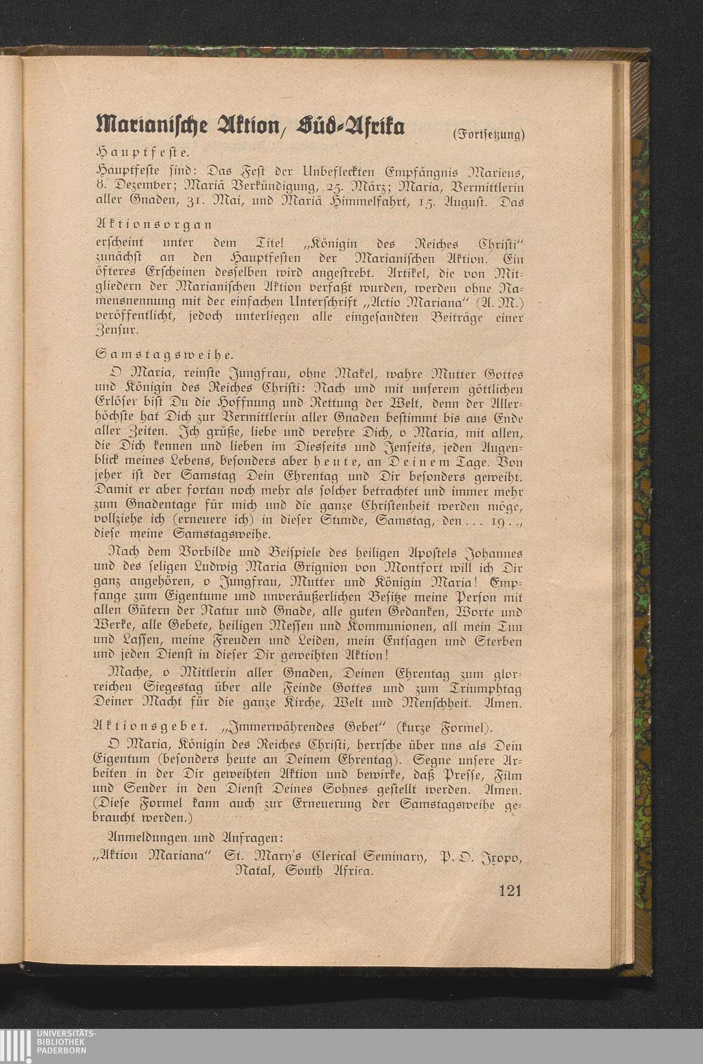 Marianische Aktion, Süd-Afrika