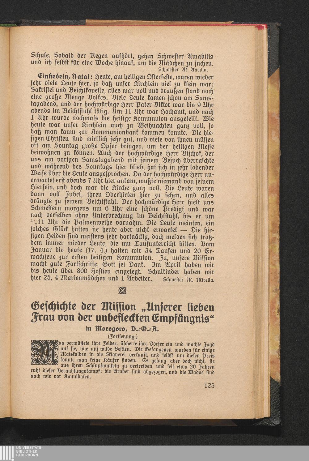 Geschichte der Mission "Unserer lieben Frau von der unbefleckten Empfängnis" in Morogoro,[...]
