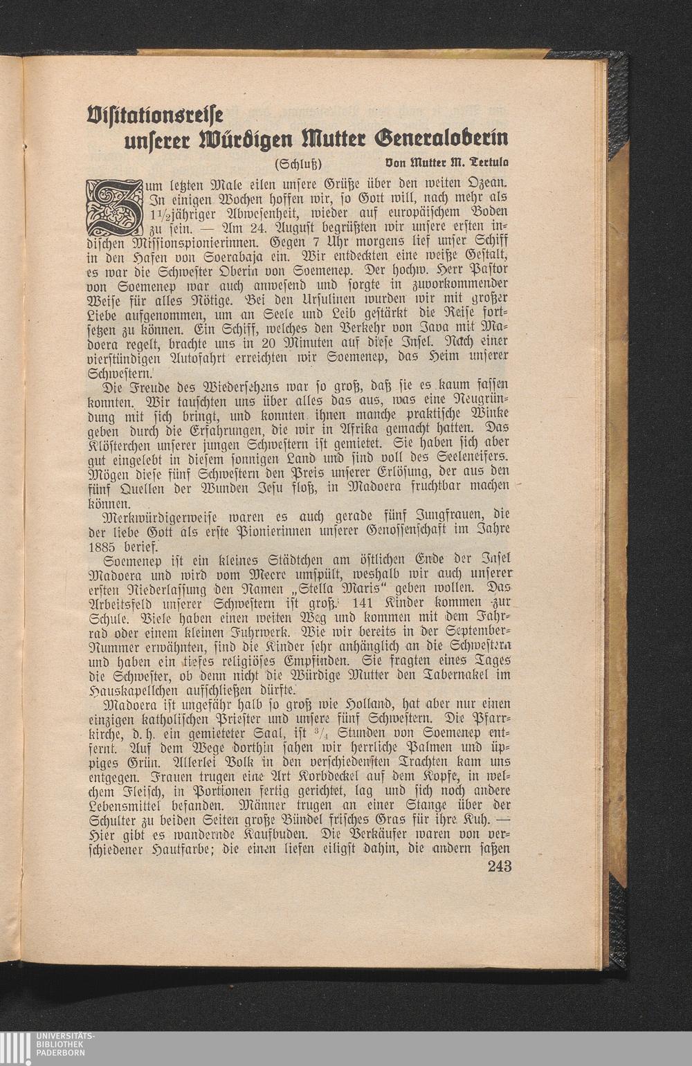 Visitationsreise unserer Würdigen Mutter Generaloberin