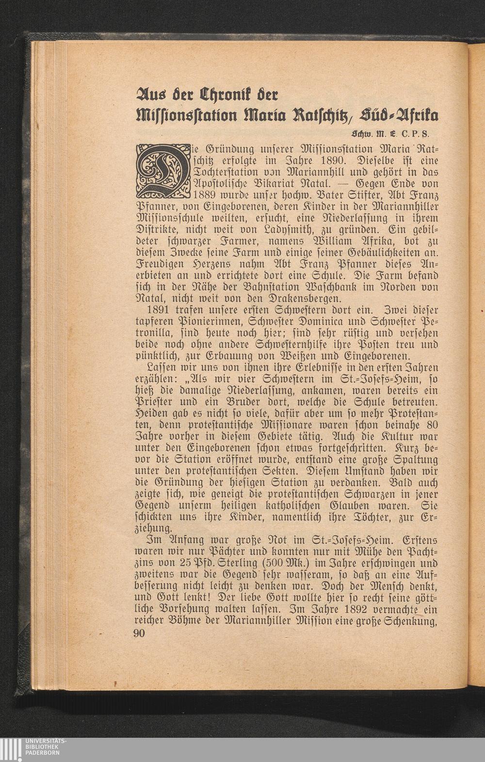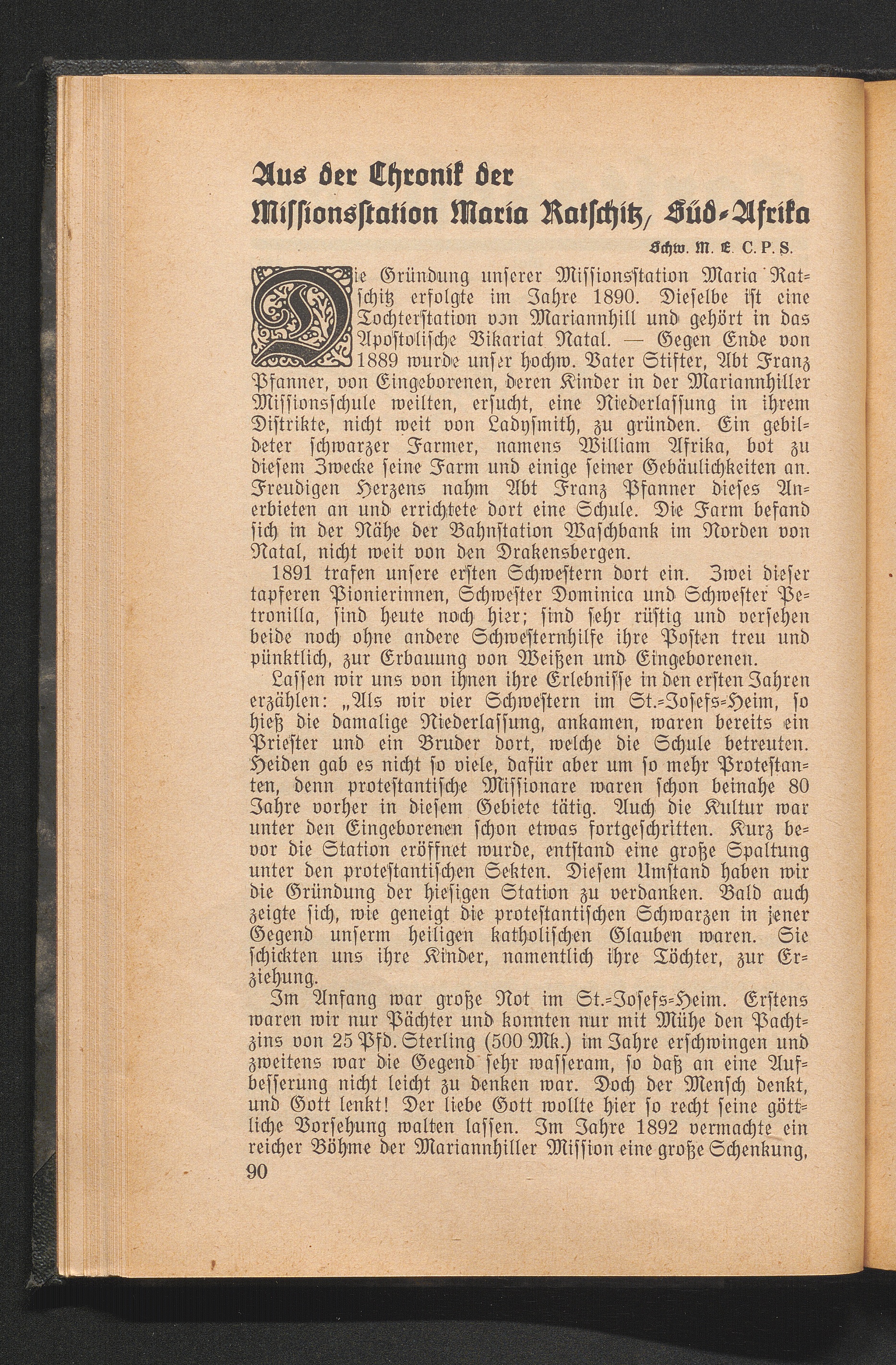 Aus der Chronik der Missionsstation Maria Ratschitz, Süd-Afrika