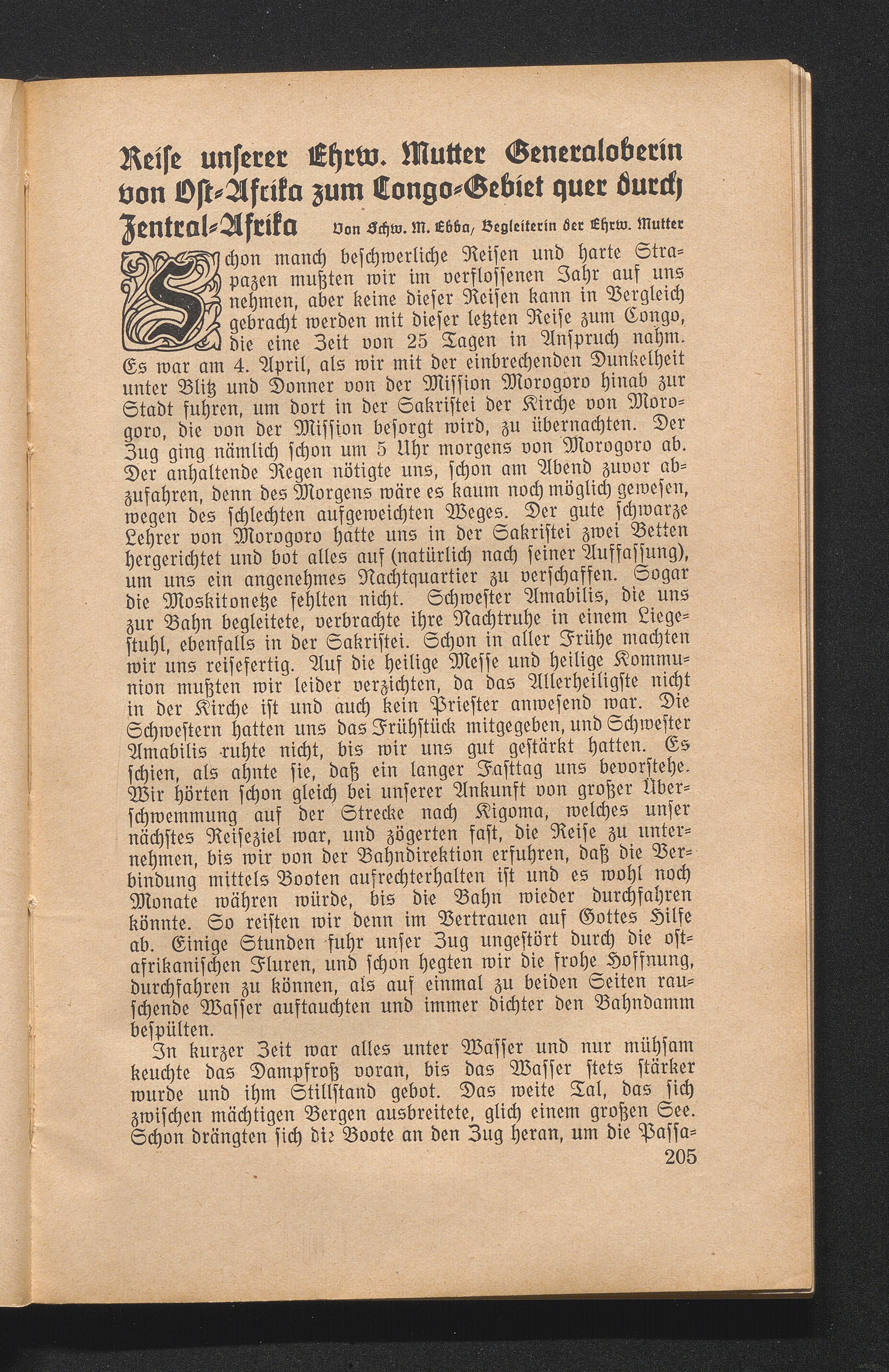 Reise unserer Ehrw. Mutter Generaloberin von Ost-Afrika zum Congo-Gebiet durch Z[...]