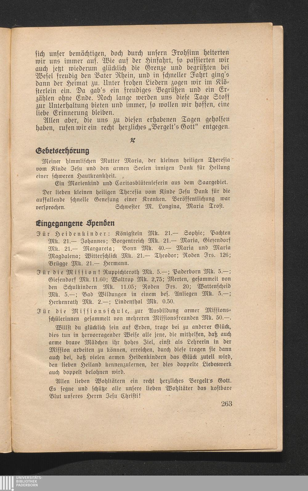 Eingegangene Spenden