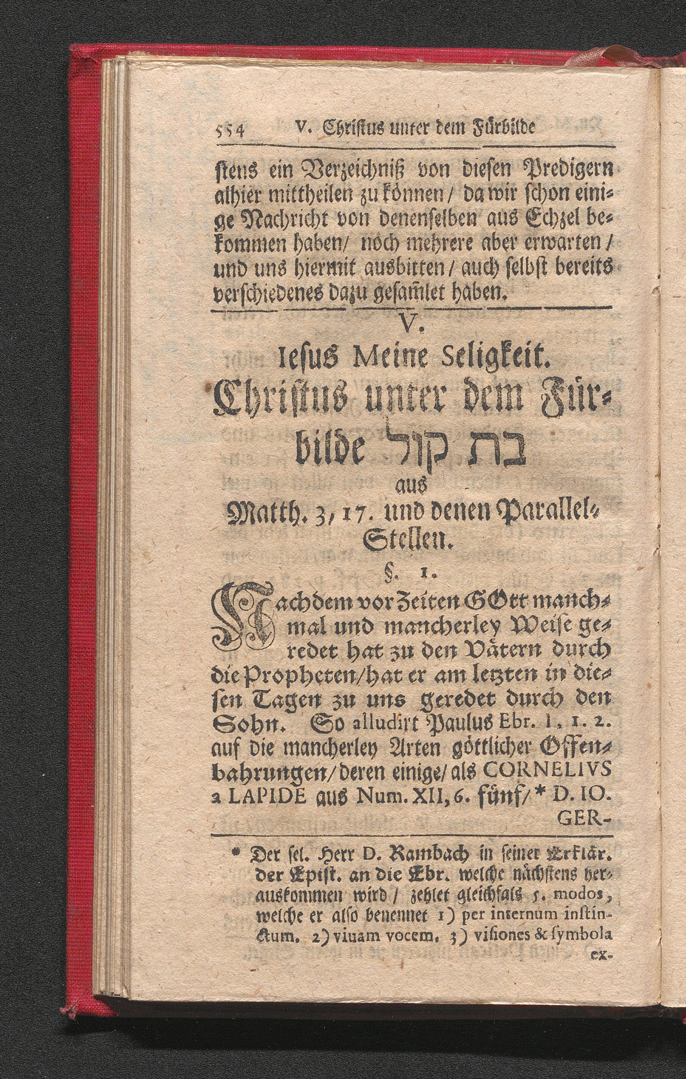 V. I. M. S. Christus/ unter dem Fürbilde בת קיל Bath. Kol, aus Matth. 3/17. und denen Parallel-Stellen.