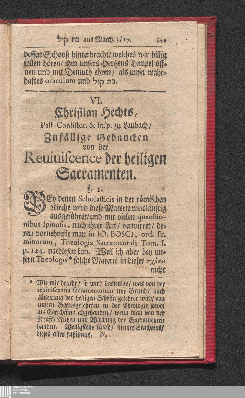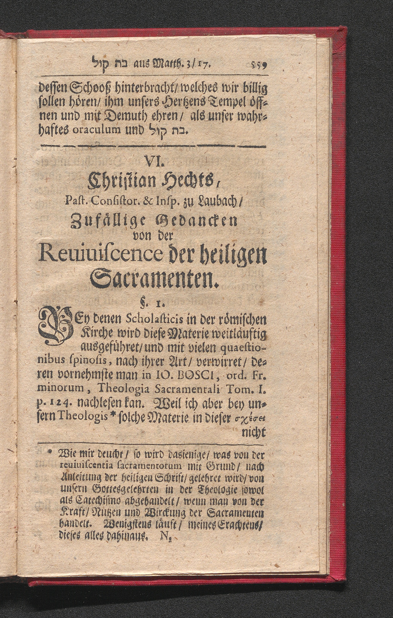 VI. Christian Hechts/ Past. Consist. und Insp. zu Laubach/ zufällige Gedancken von[...]