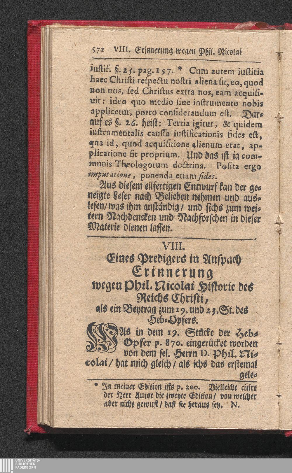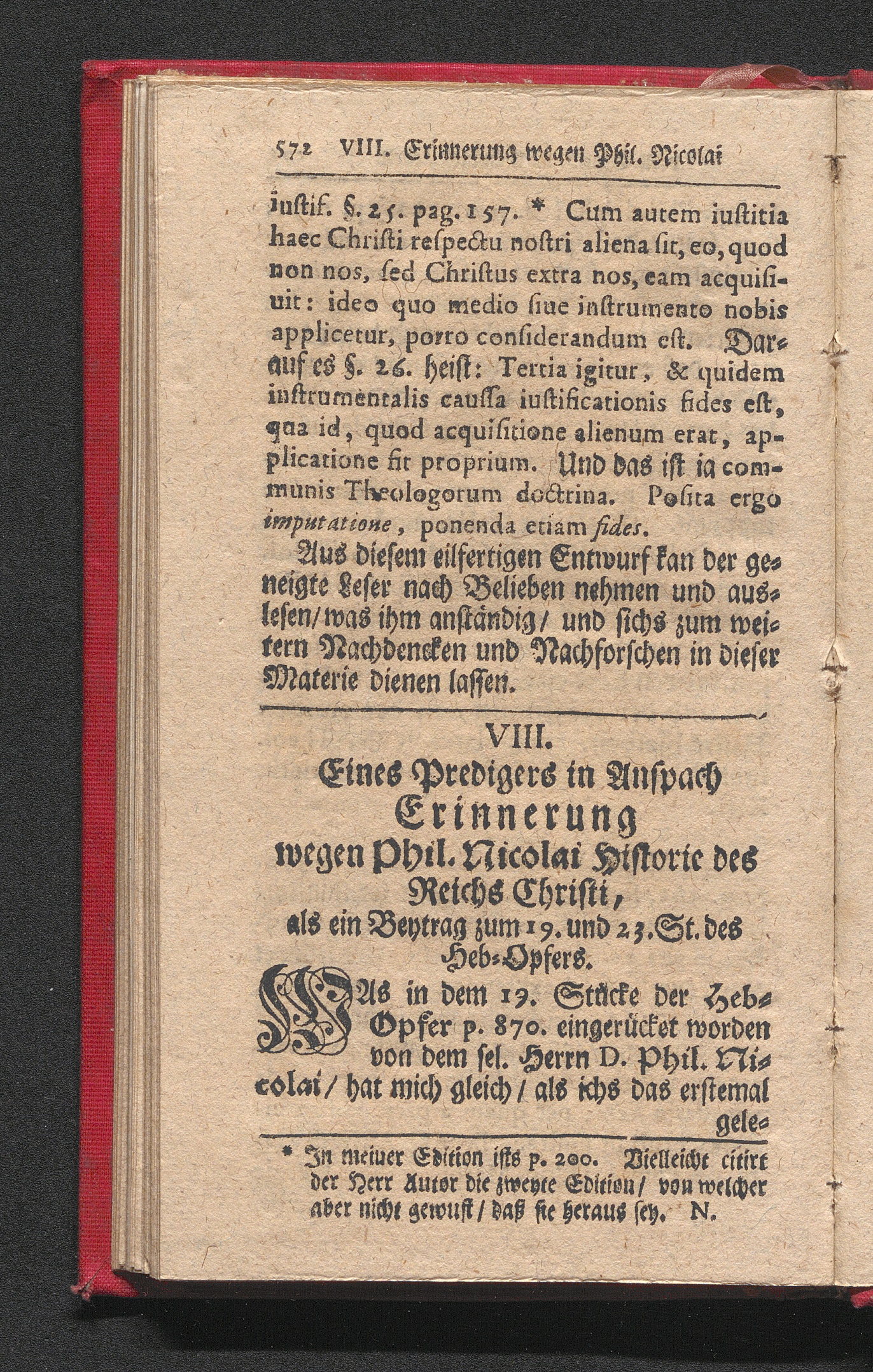 VIII. Eines Predigers in Anspach Erinnerung wegen Phil. Nicolai Historie des Reichs Christi/ als ein Beytrag zum 19. und 23. Stück des Heb-Opfers.