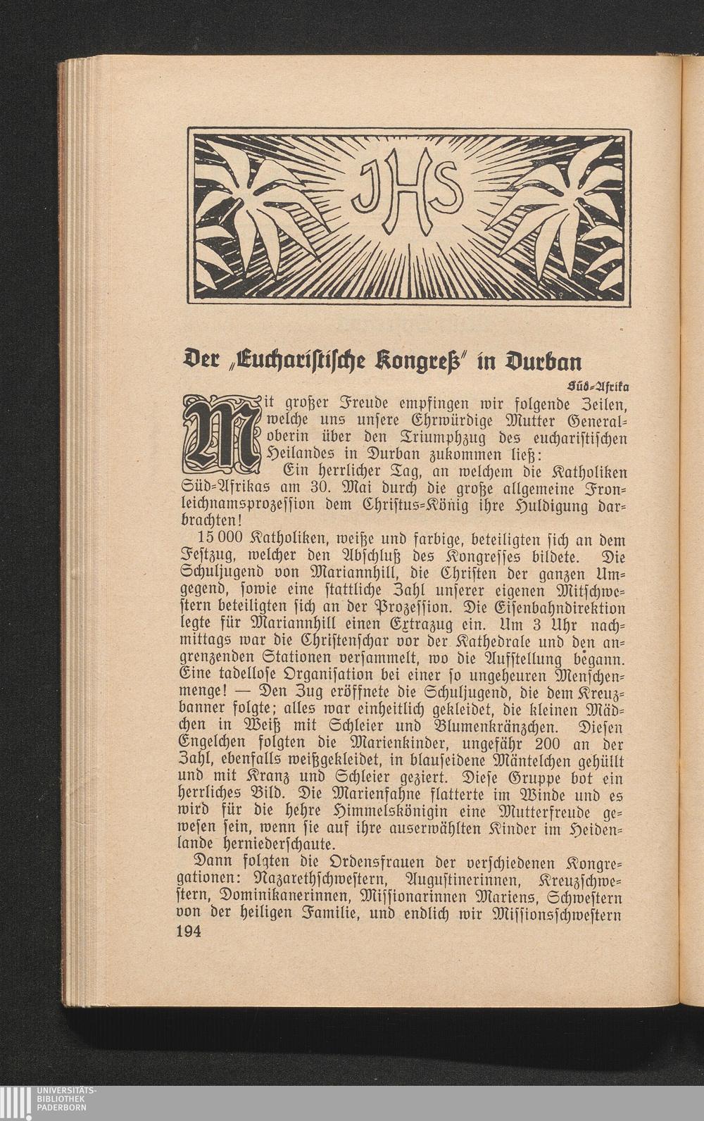 Der "Eucharistische Kongreß" in Durban