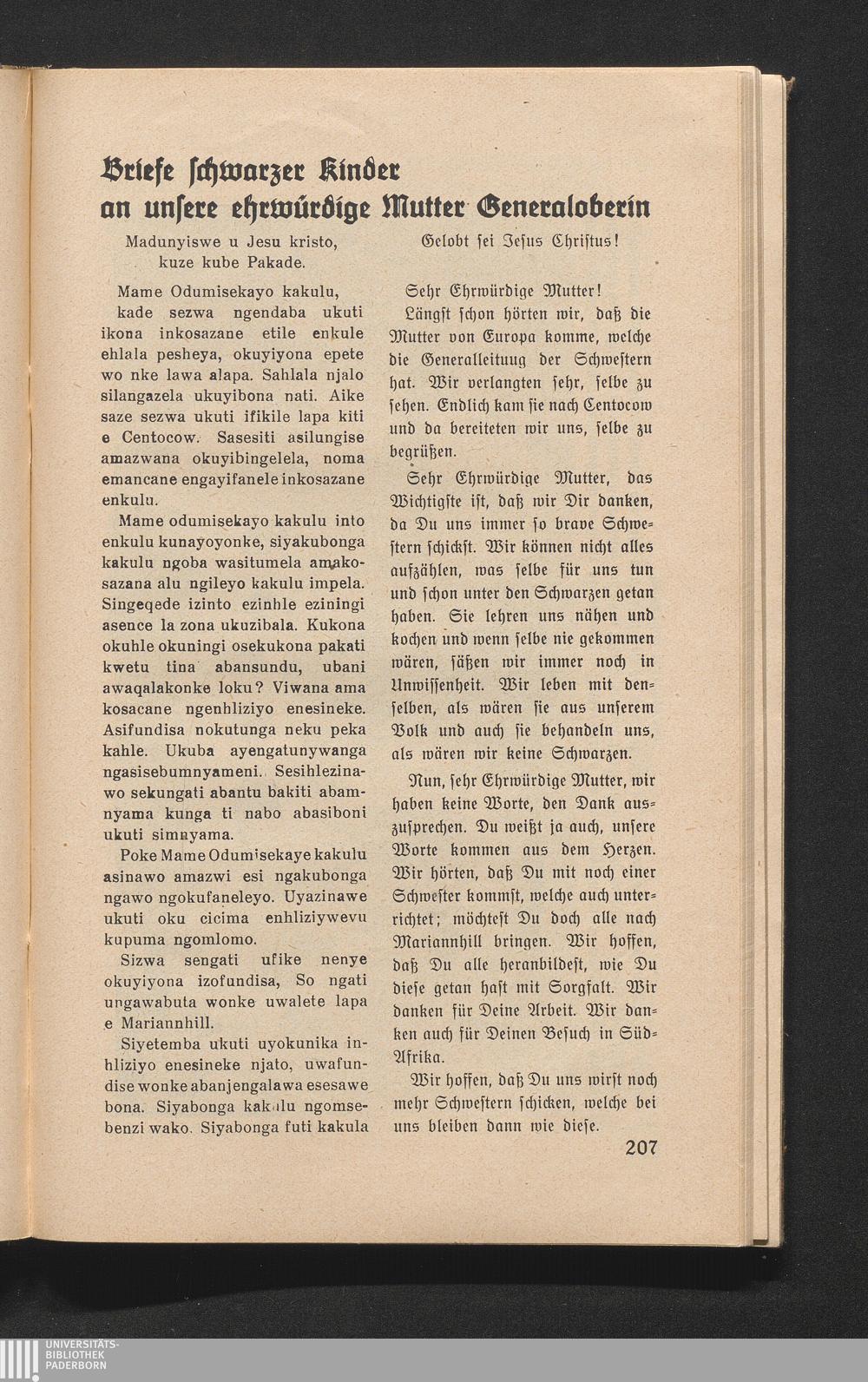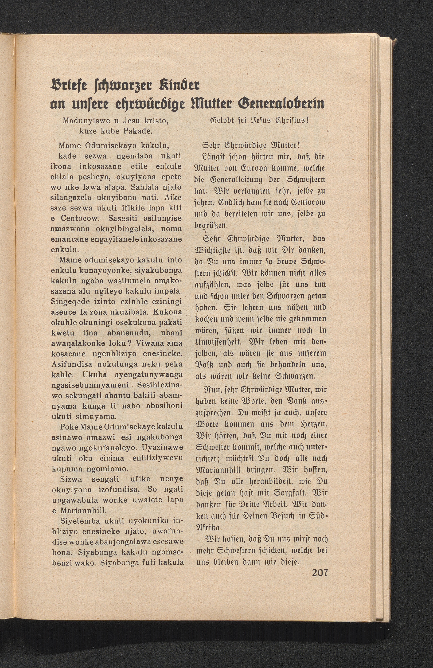Briefe schwarzer Kinder an unsere ehrwürdige Mutter Generaloberin