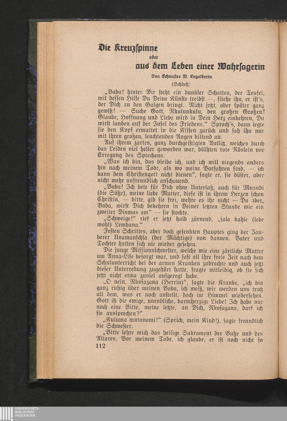 Die Kreuzsspinne oder aus dem Leben einer Wahrsagerin
