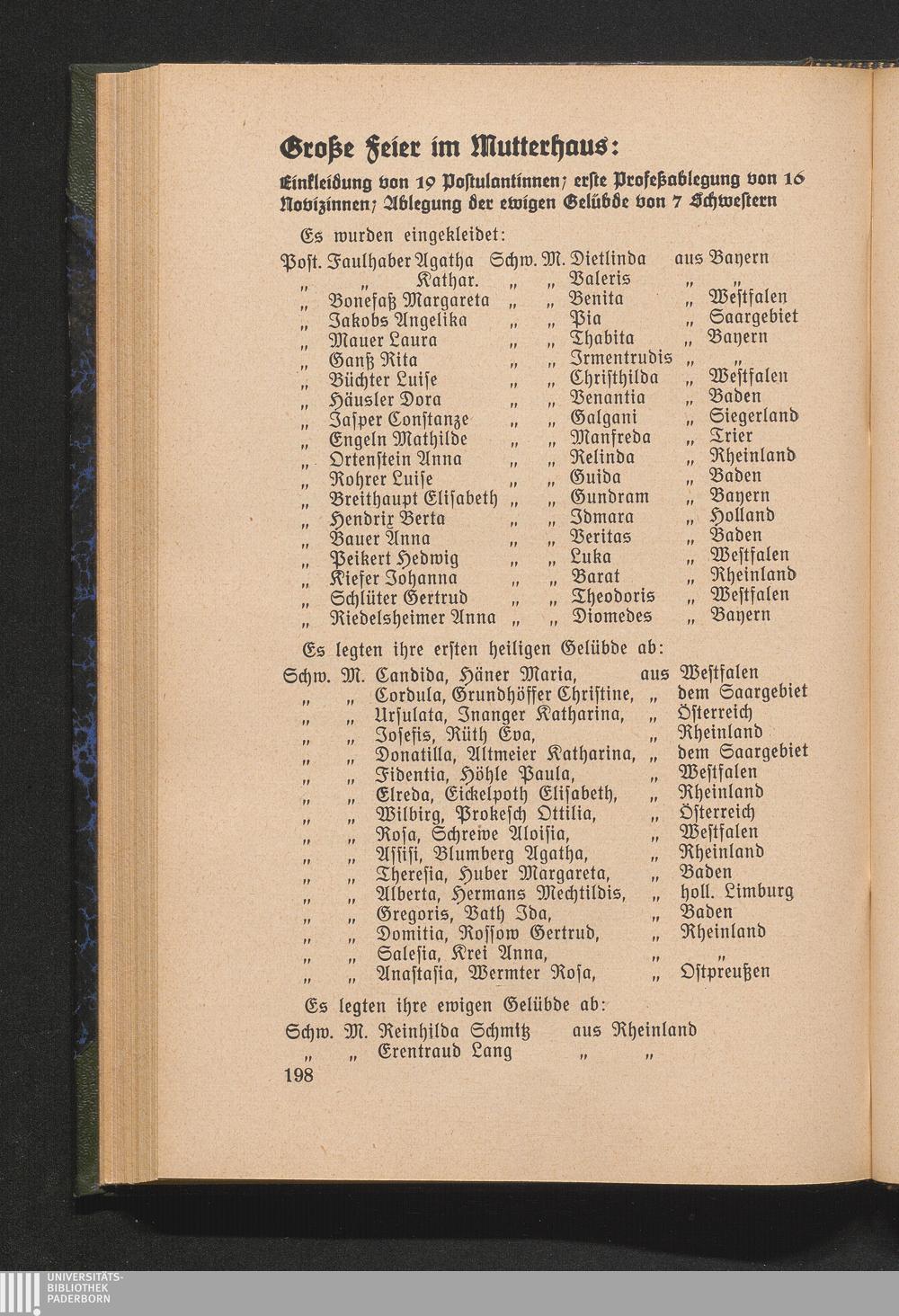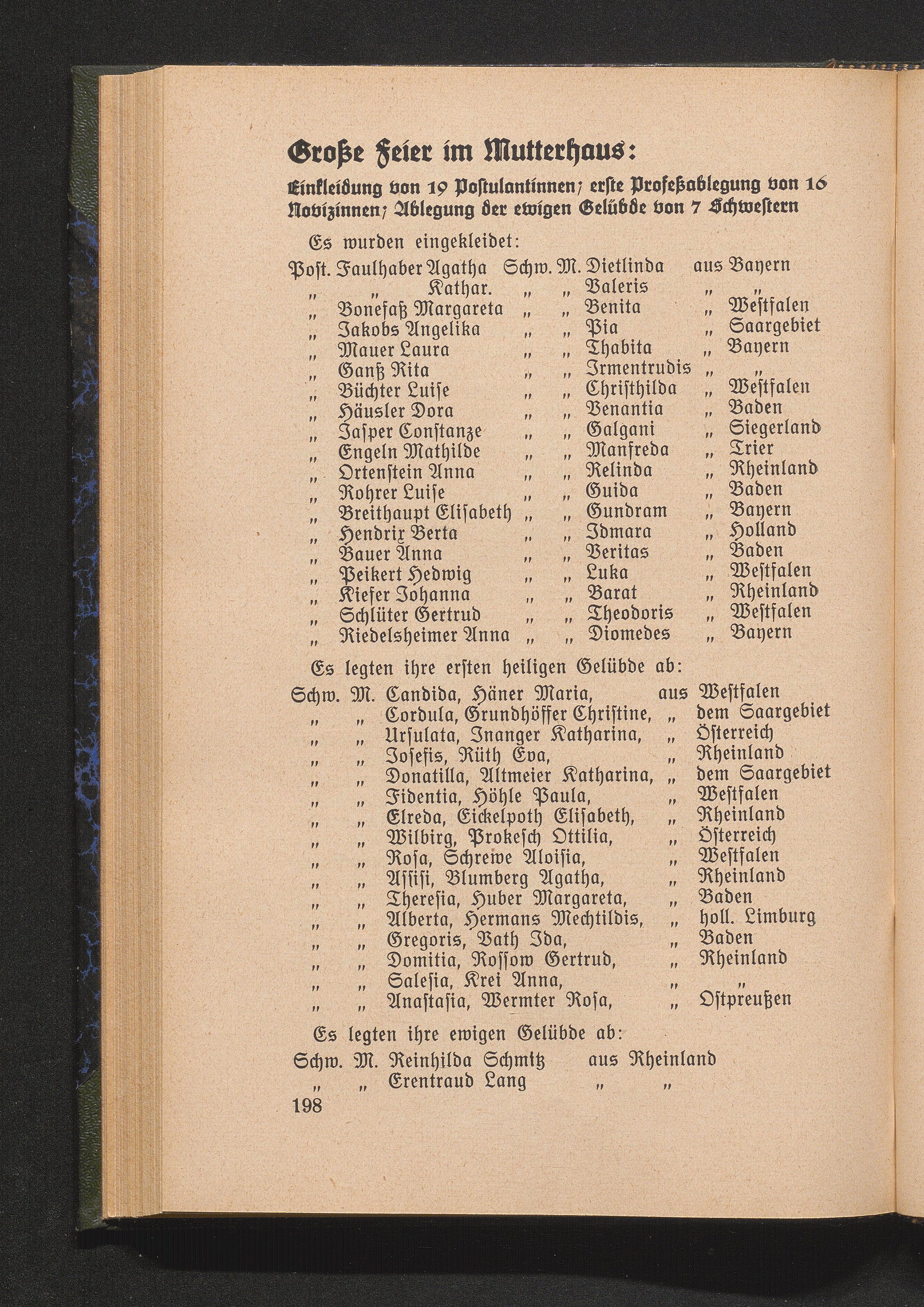 Große Feier im Mutterhaus: Einkleidung von 19 Postulantinnen; erste Profeßablegung[...]