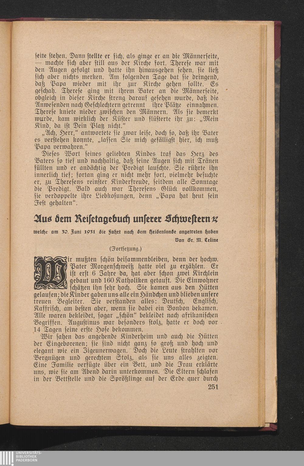 Aus dem Reisetagebuch unserer Schwestern welche am 30. Juni 1931 die Fahrt nach dem[...]