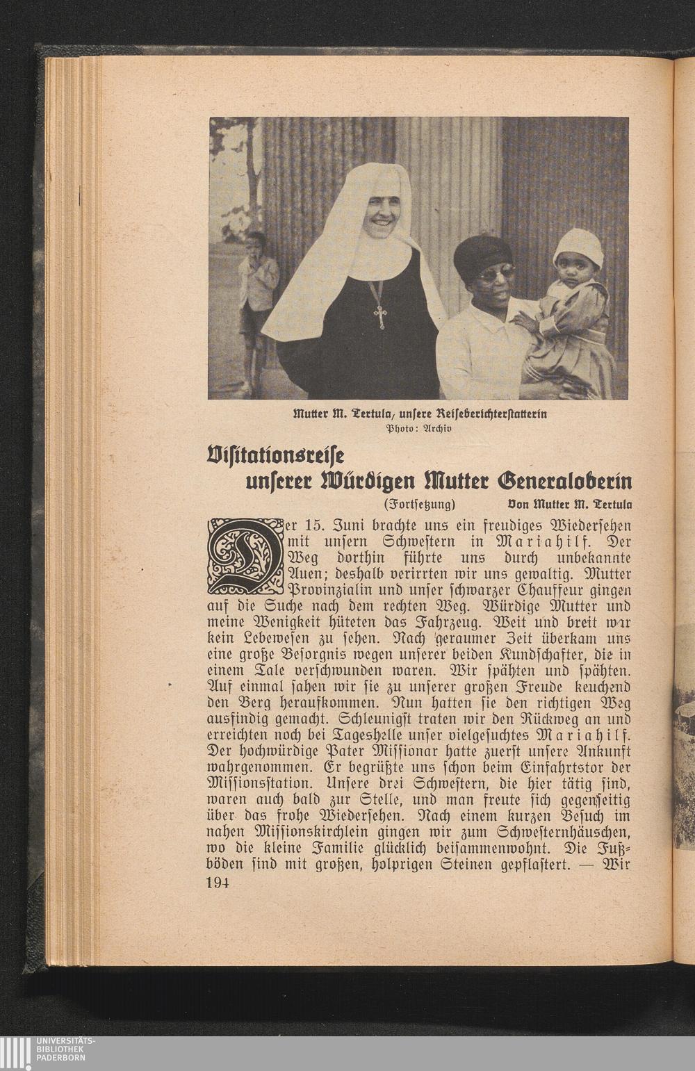Visitationsreise unsere Würdigen Mutter Generaloberin