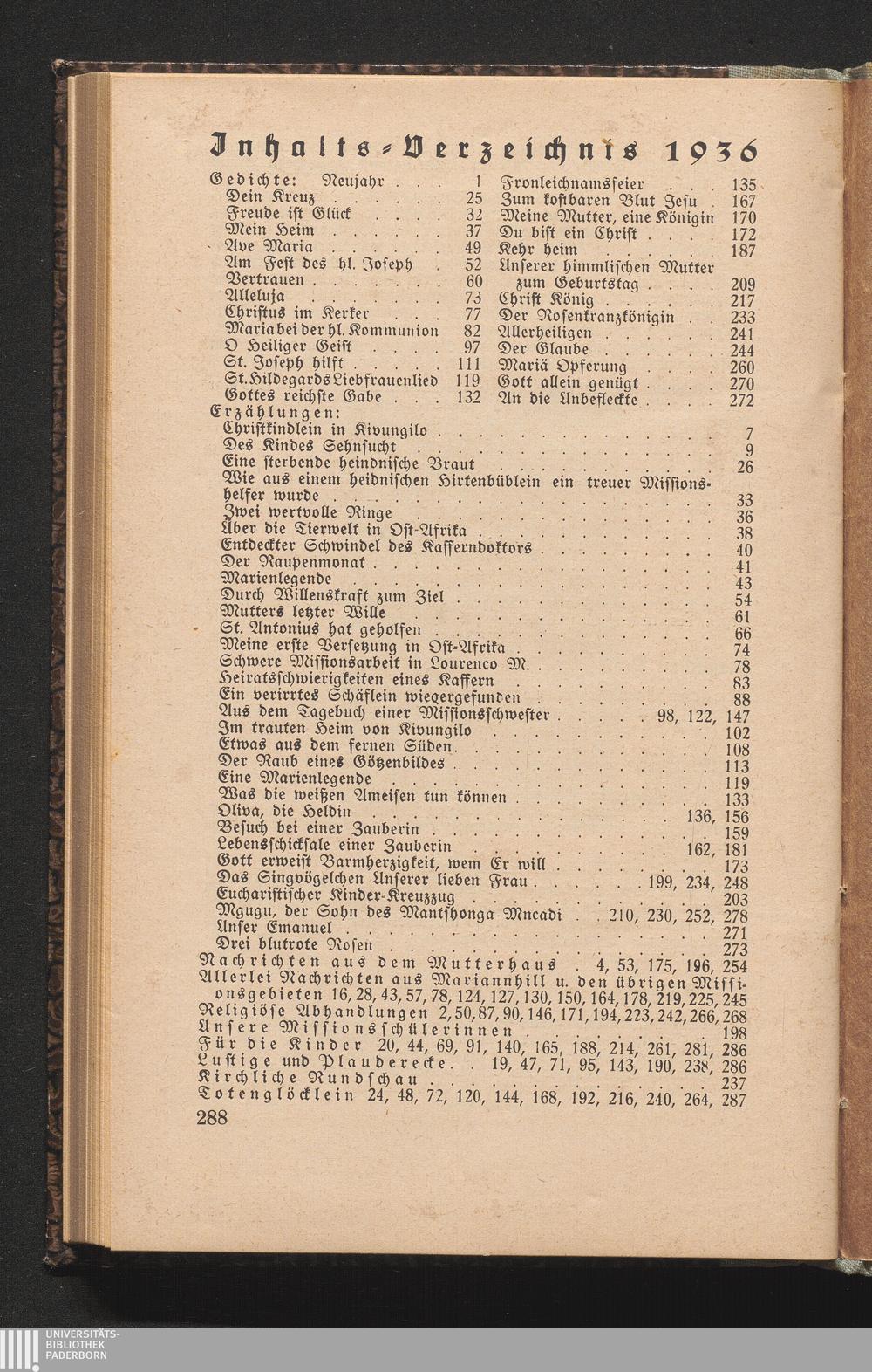 Jnhalts-Verzeichnis 1936