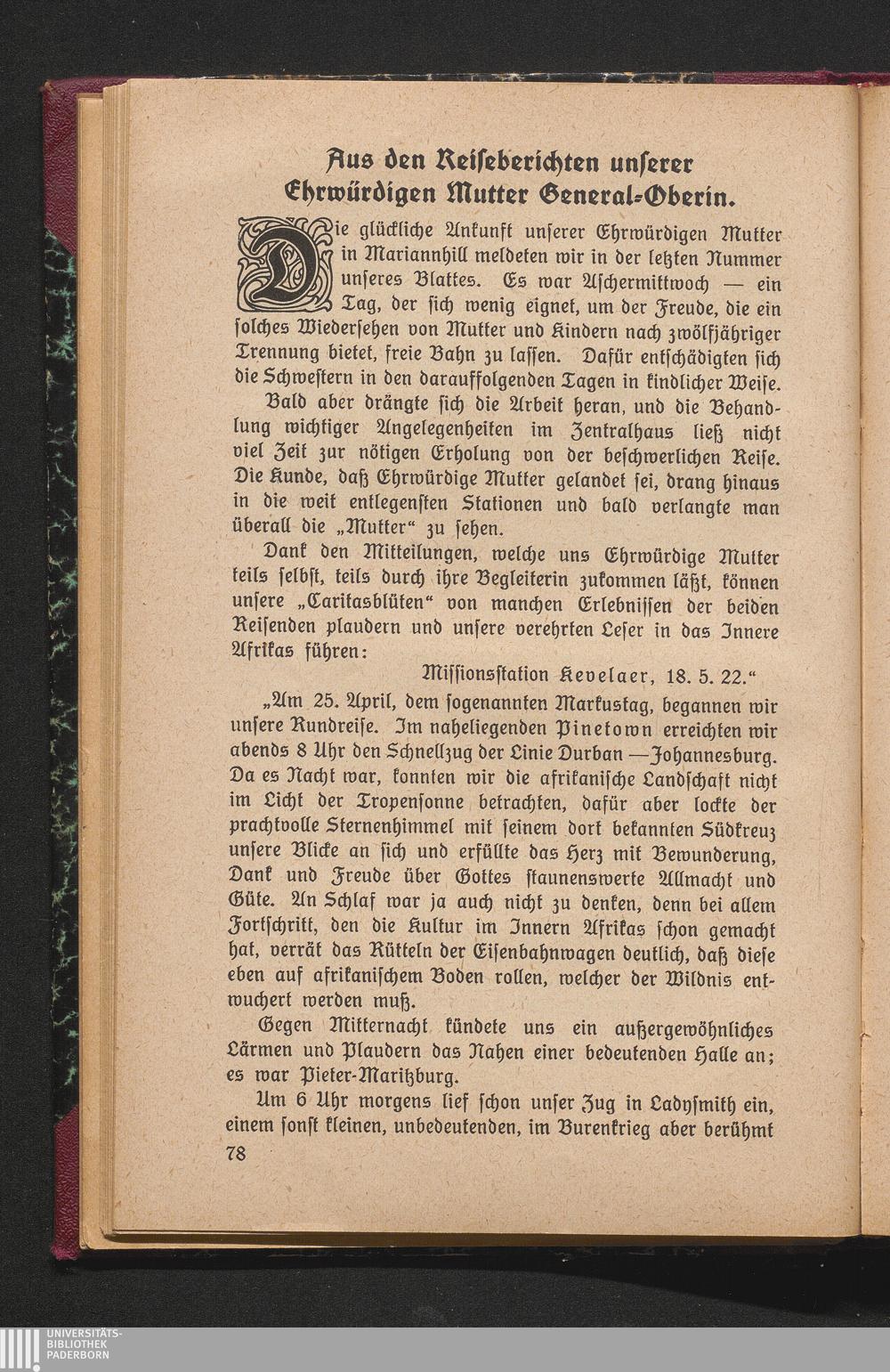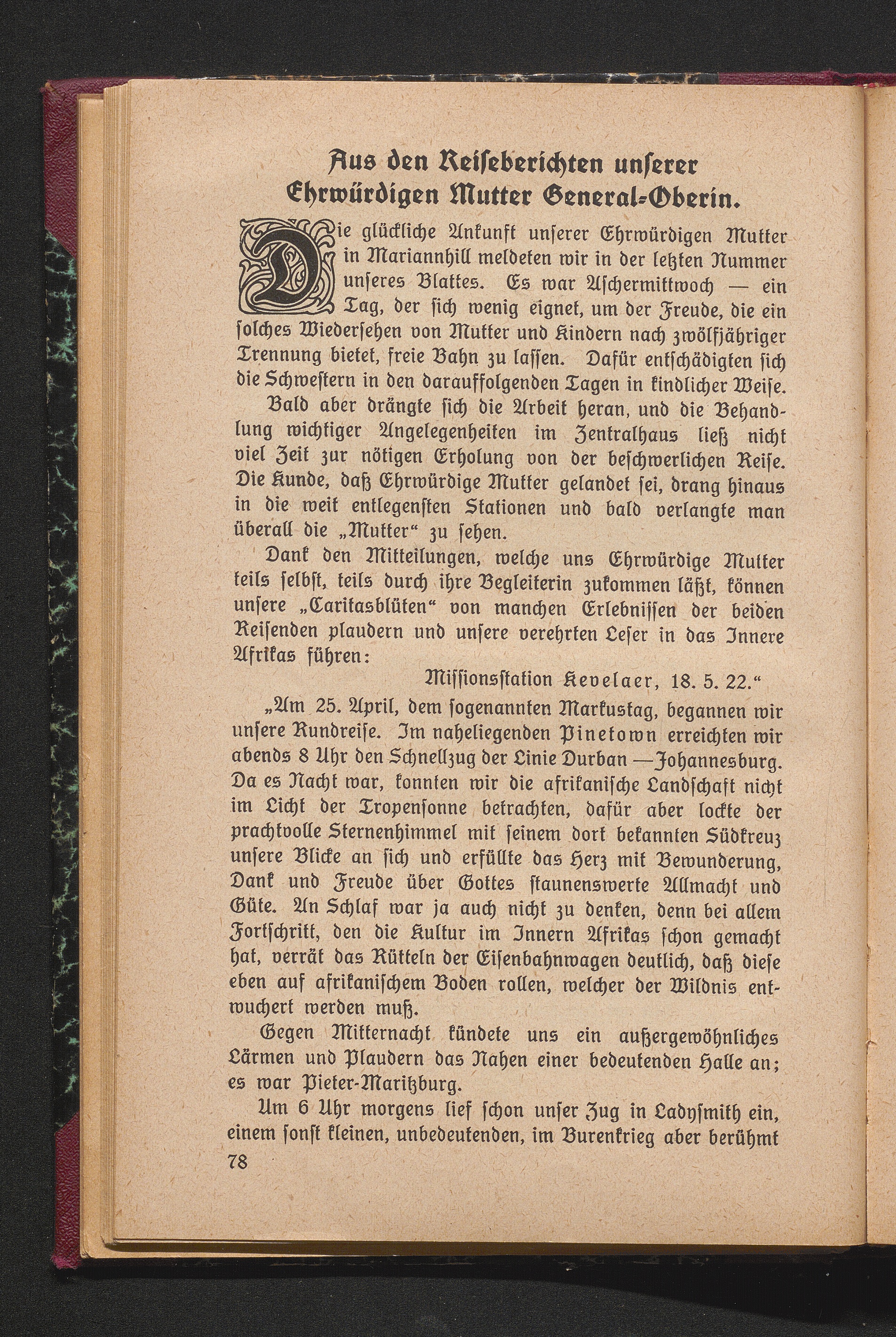 Aus den Reiseberichten unserer Ehrwürdigen Mutter General-Oberin