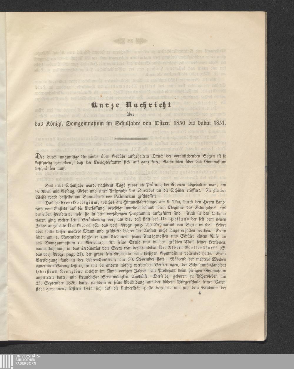 Kurze Nachricht über das Königl. Domgymnasium im Schuljahre von Ostern 1850 bis dahin[...]