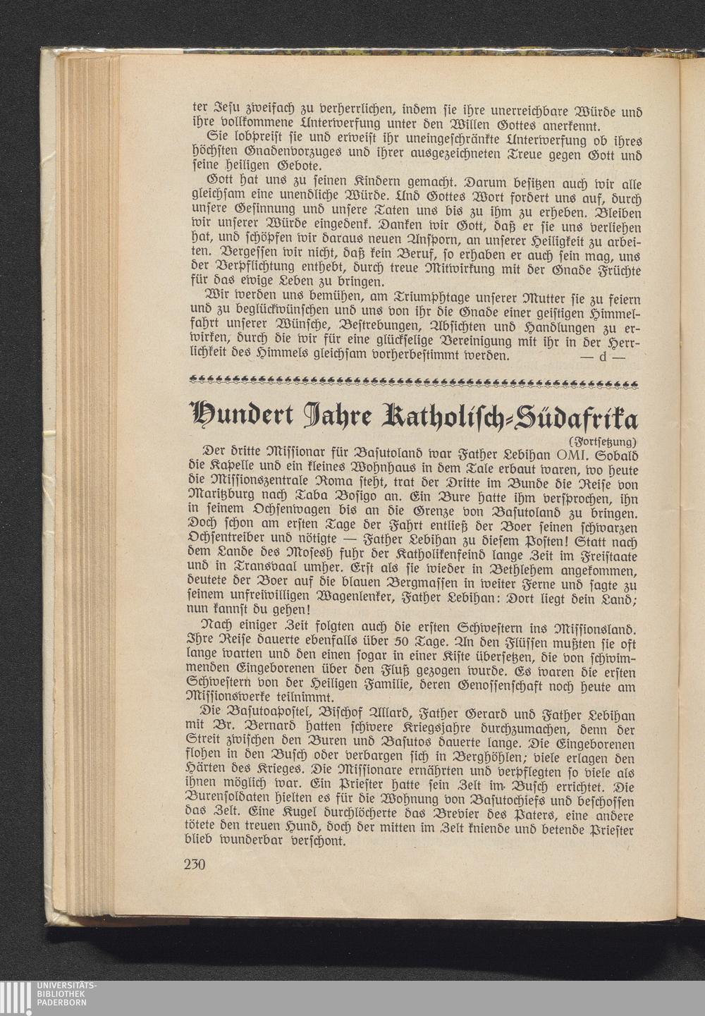 Hundert Jahre Katholisch-Südafrika.