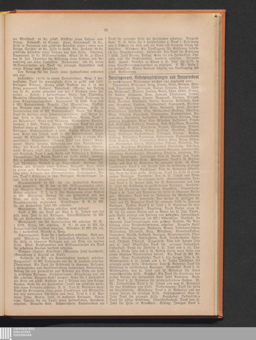 Danksagungen, Gebetsempfehlungen und Antoniusbrot