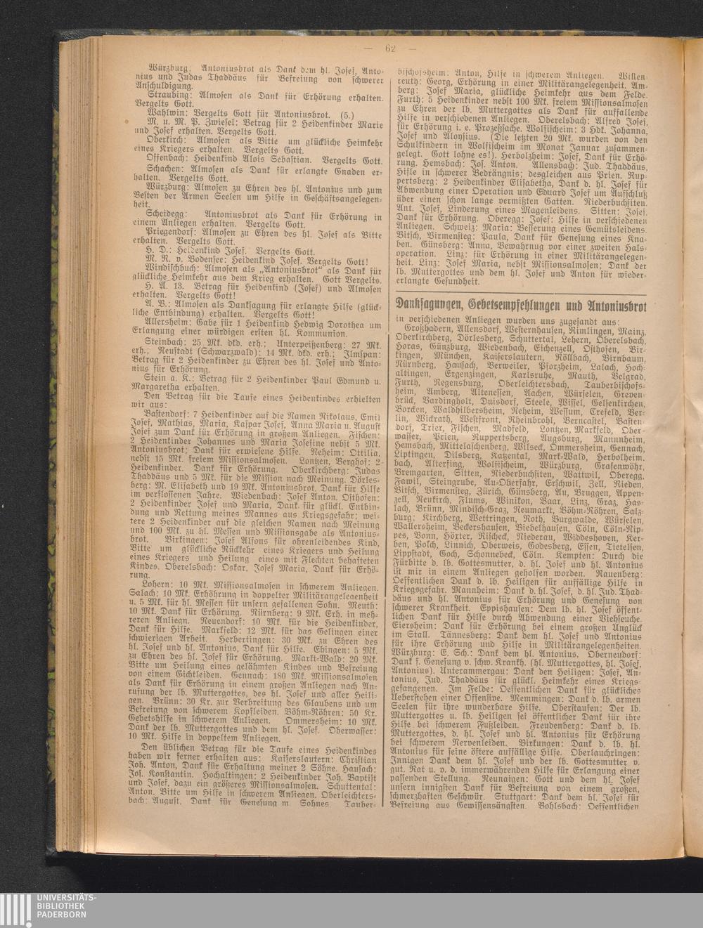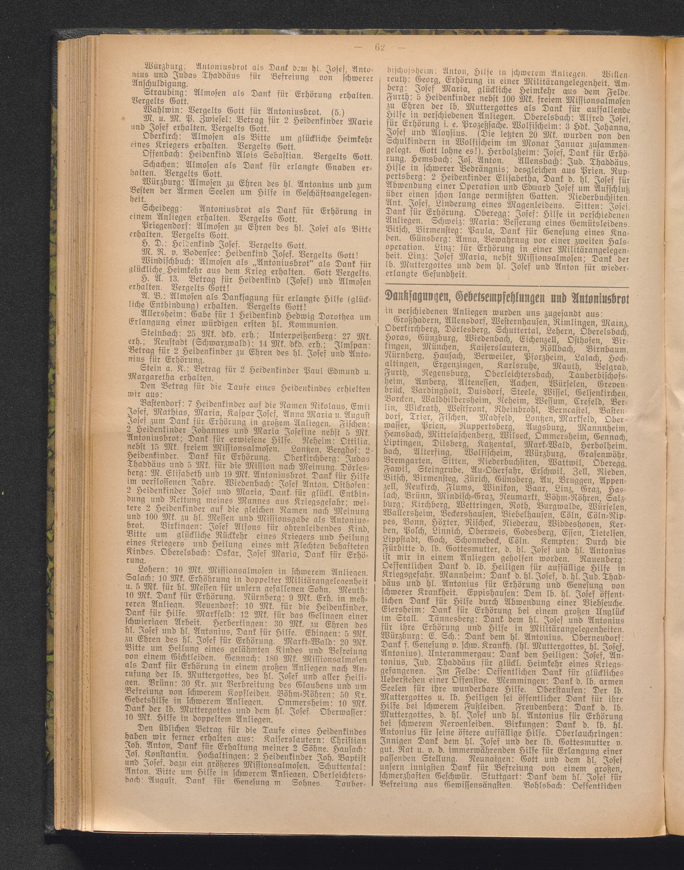 Danksagungen, Gebetsempfehlungen und Antoniusbrot.