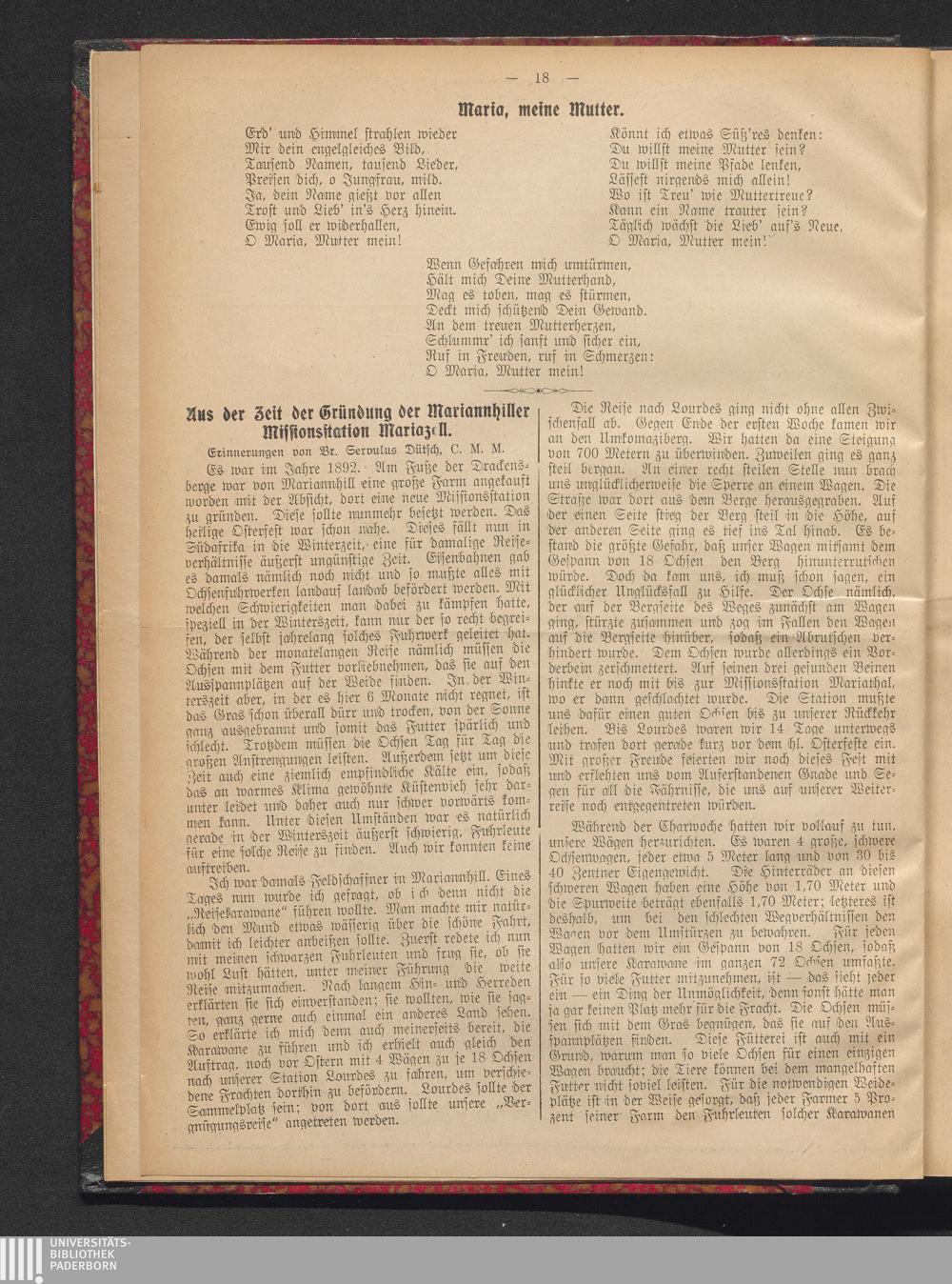Aus der Zeit der Gründung der Mariannhiller Missionsstation Mariazell.