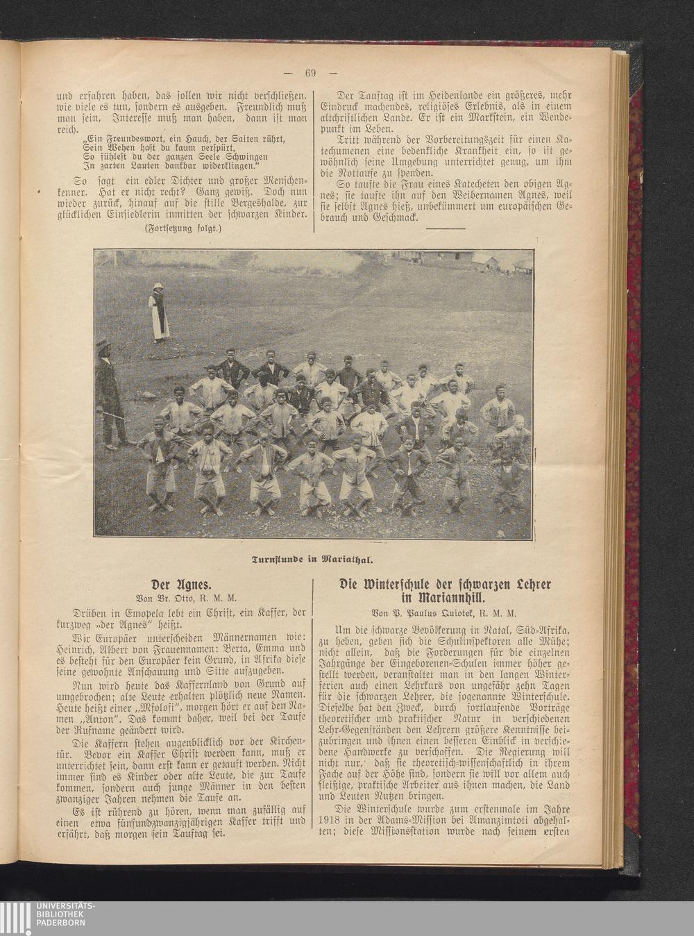 Die Winterschule der schwarzen Lehrer in Mariannhill.