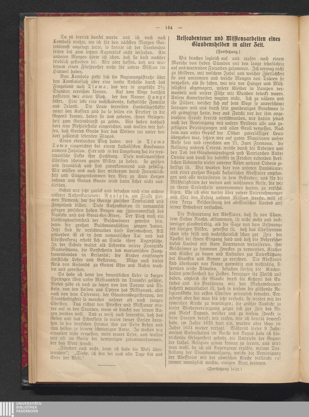 Reiseabenteuer und Missionsarbeiten eines Glaubenshelden in alter Zeit.