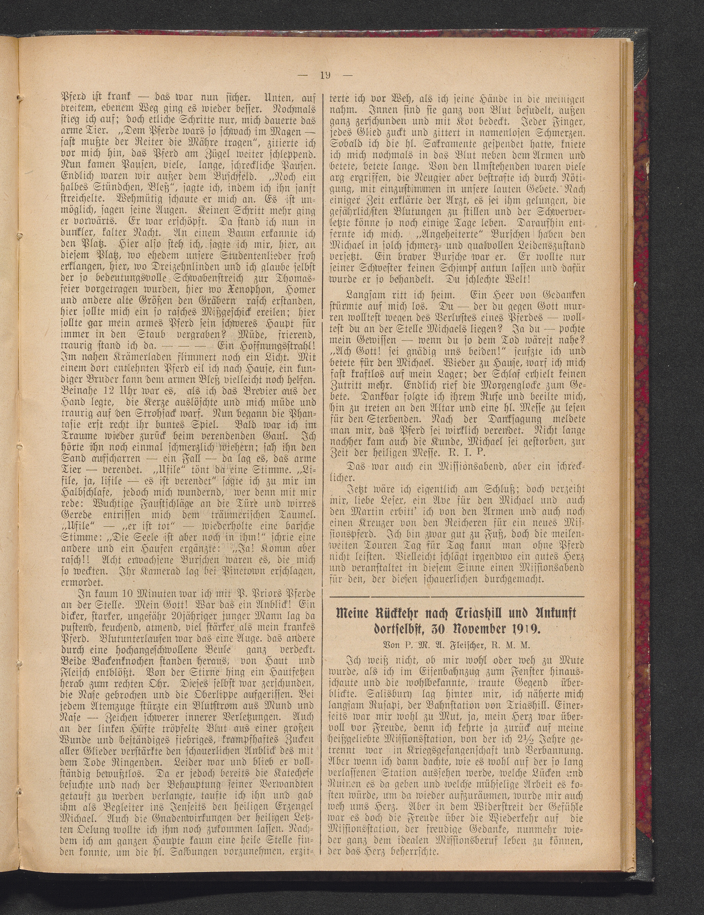 Meine Rückkehr nach Triashill und Ankunft dortselbst, 30. November 1919.
