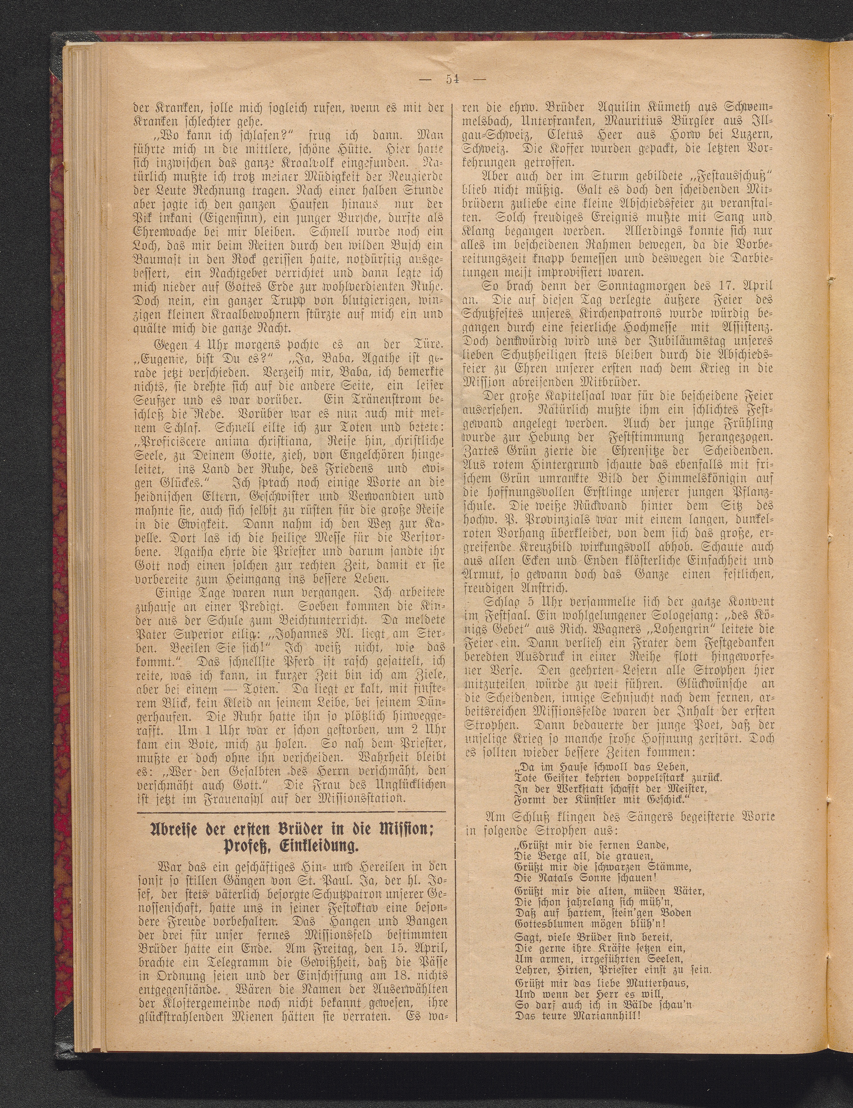 Abreise der ersten Brüder in die Mission; Profeß, Einkleidung.