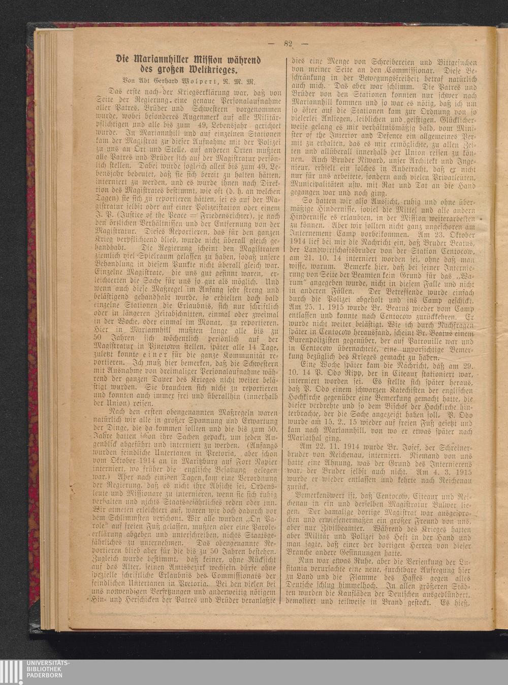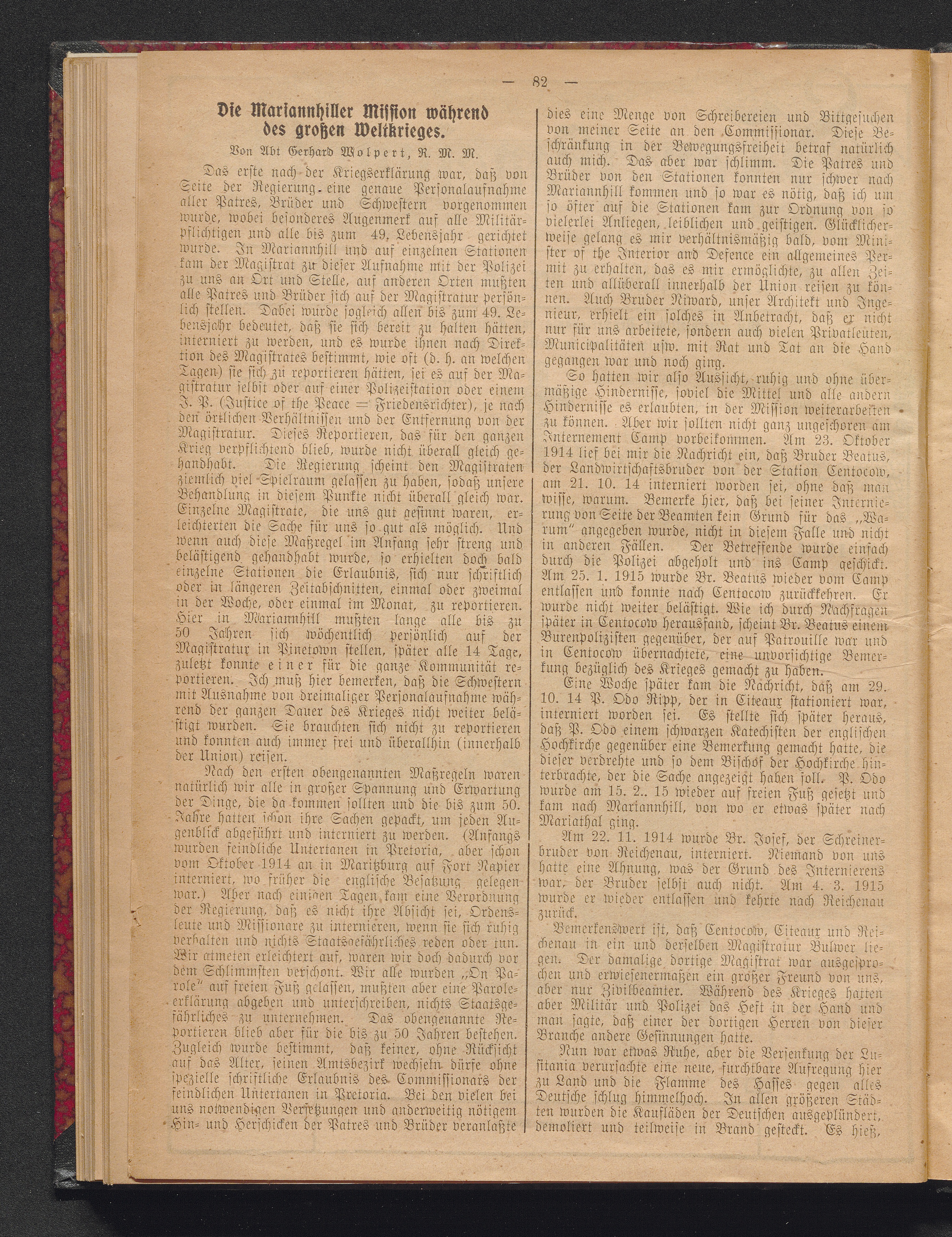 Die Mariannhiller Mission während des großen Weltkrieges.