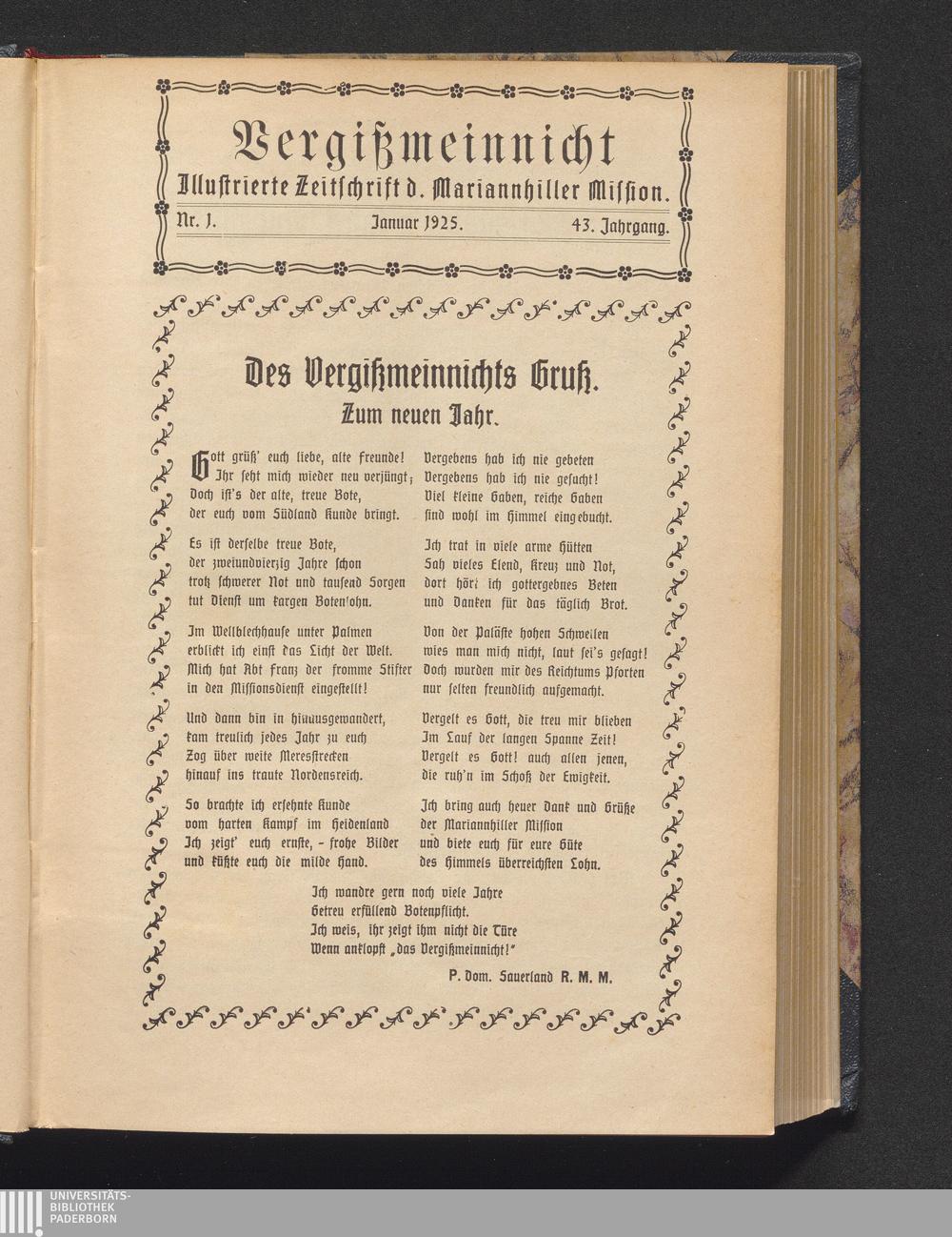 Des Vergißmeinnichts Gruß. Zum neuen Jahr.