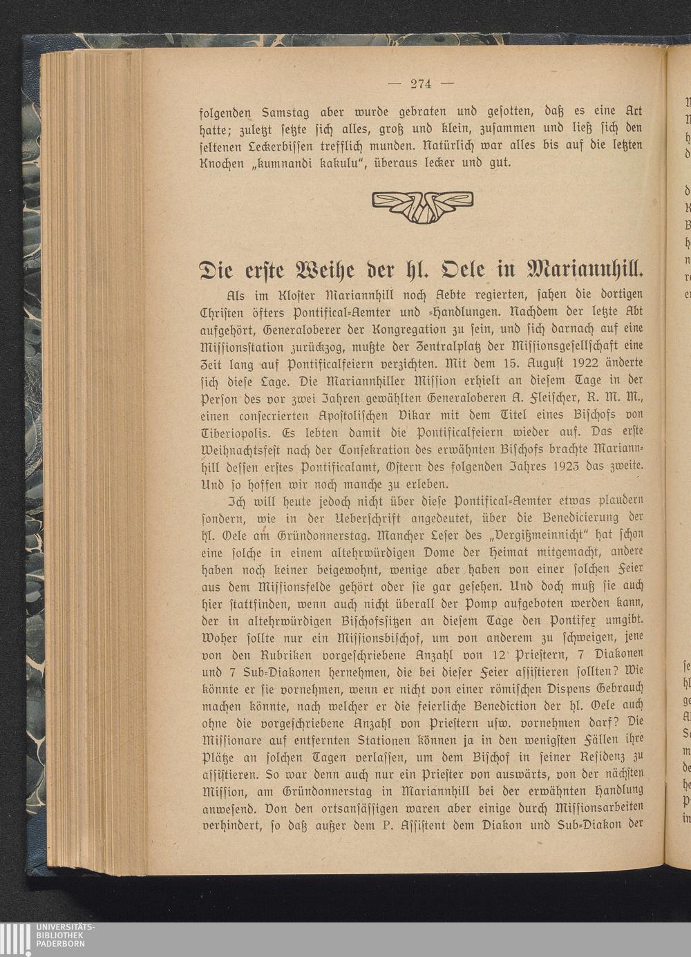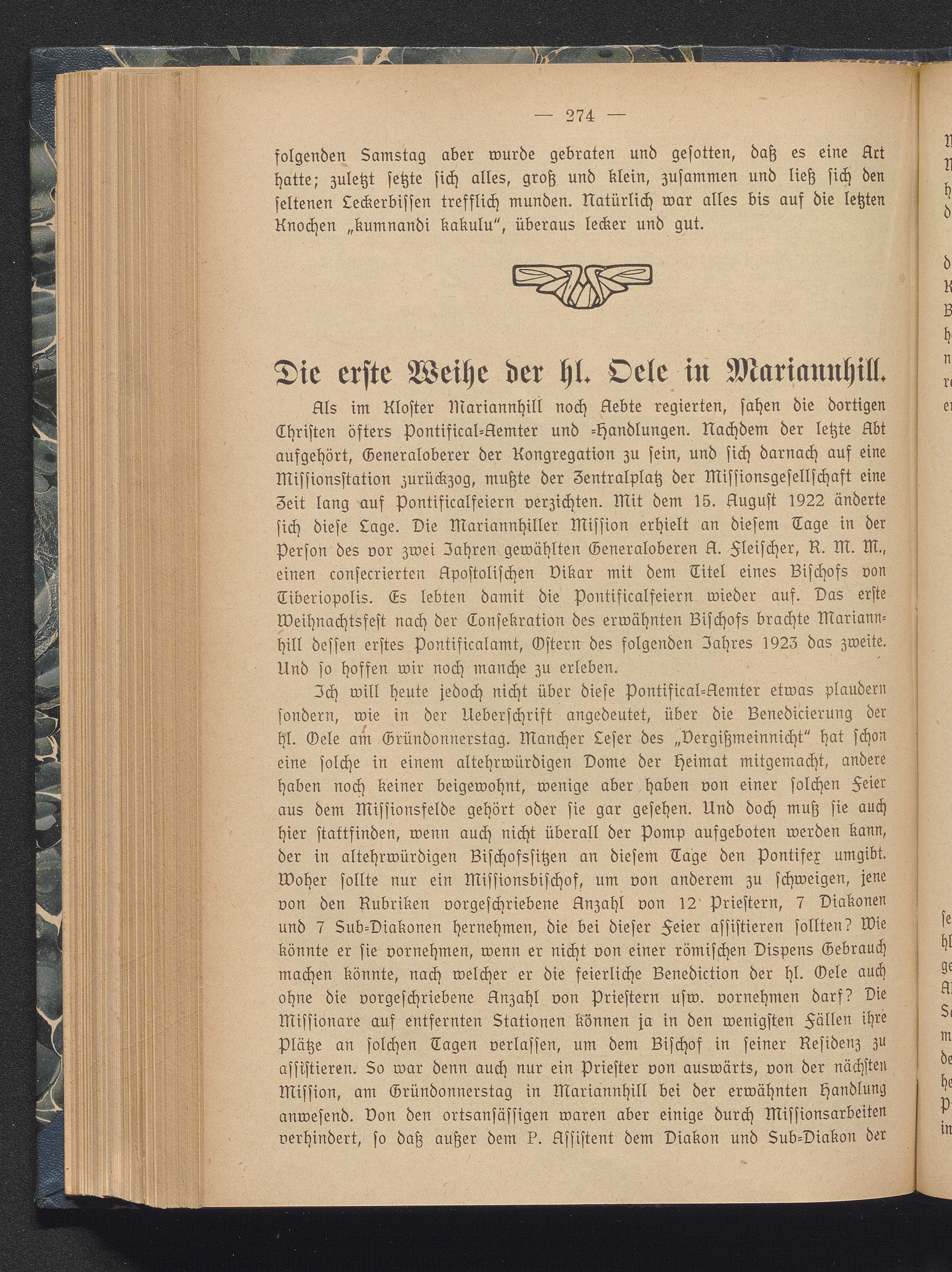 Die erste Weihe der hl. Oele in Mariannhill.