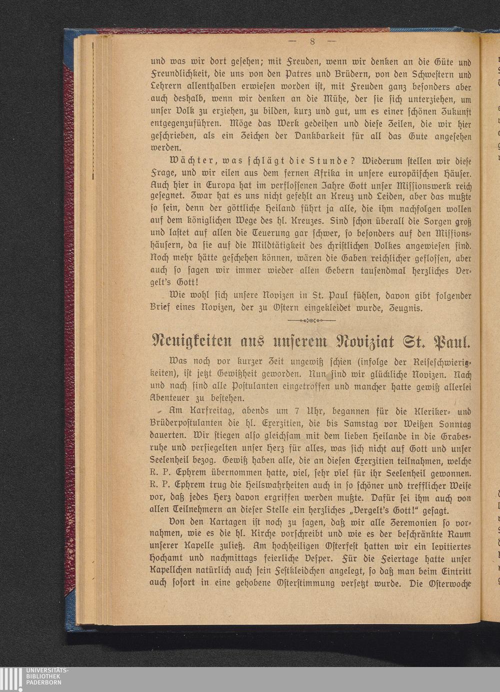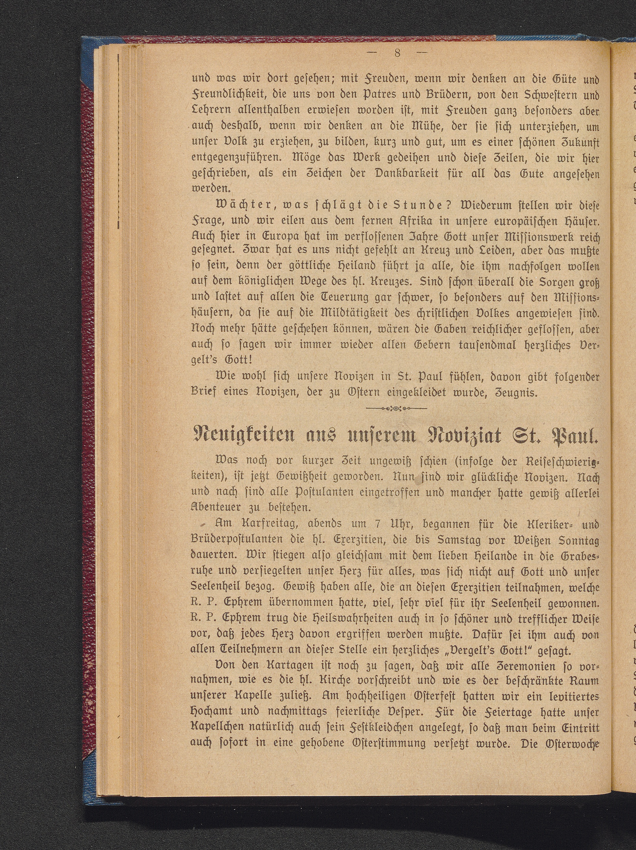 Neuigkeiten aus unserem Noviziat St. Paul.