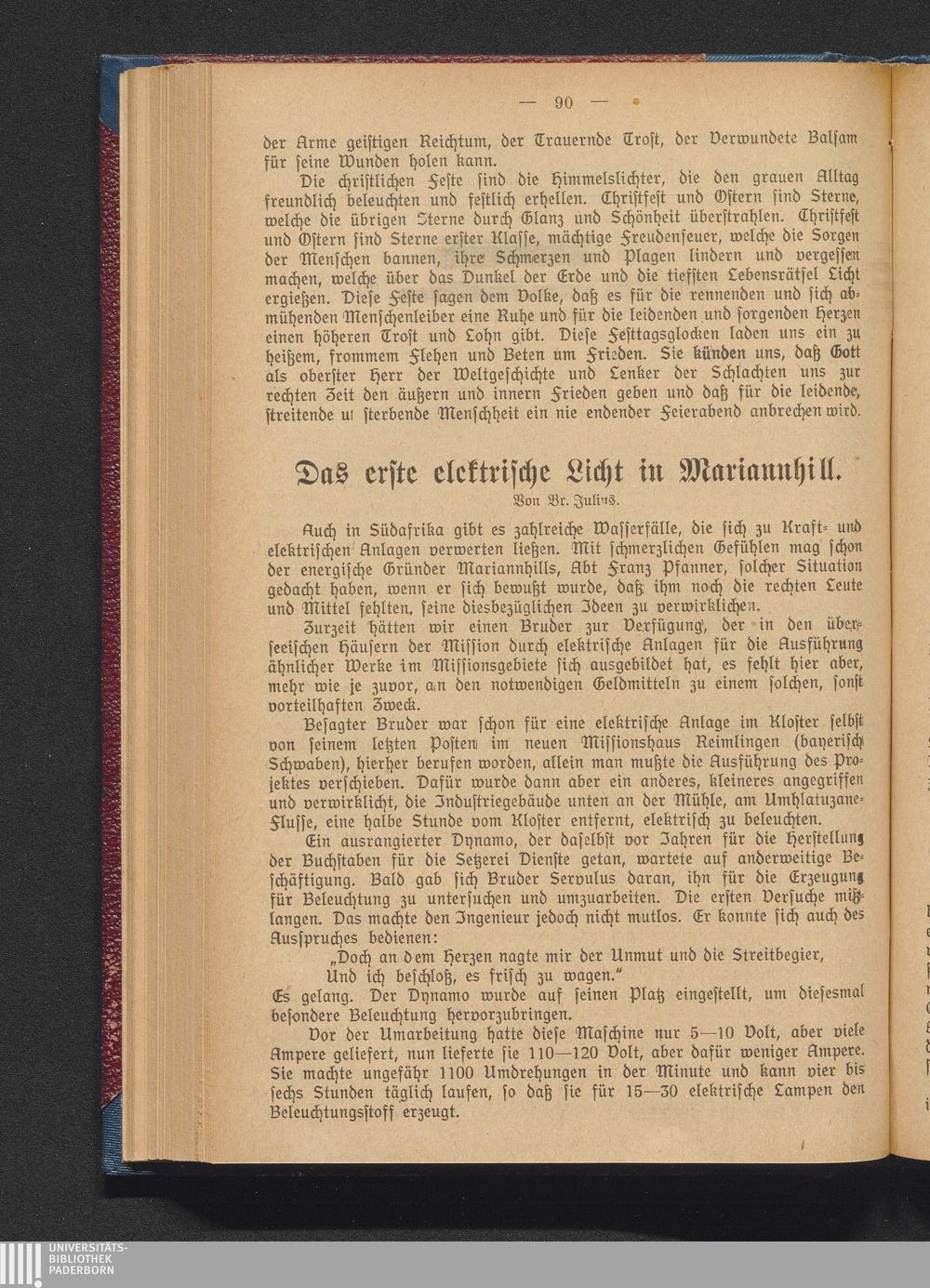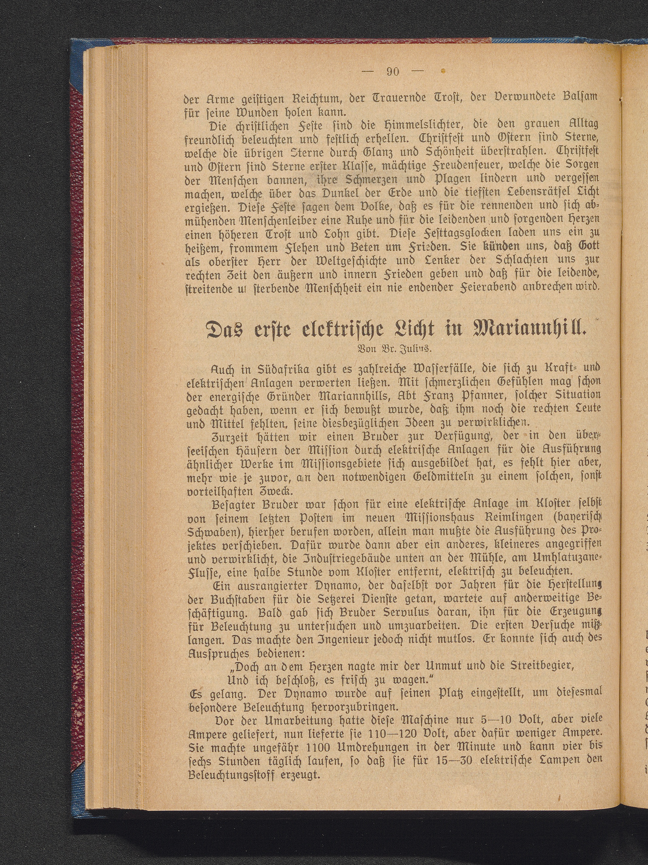 Das erste elektrische Licht in Mariannhill.